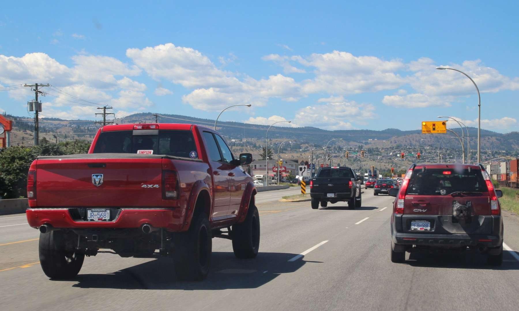 Potężne samochody, objuczone bagażem w postaci przyczep kempingowych, quadów czy maszyn rolniczych, są częstym widokiem na prowincji, ale nie brakuje też ich w największych miastach zachodniej części kraju - Vancouver czy Calgary. Ich eksploatacja nie nastręcza większych trudności. Do rozmiarów samochodów dopasowano układ pasów ruchu czy rozmiary miejsc parkingowych - zarówno wyznaczonych na ulicach, jak i ulokowanych pod budynkami.