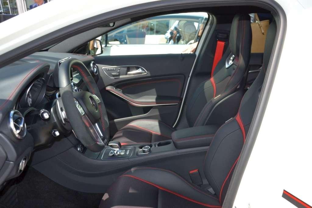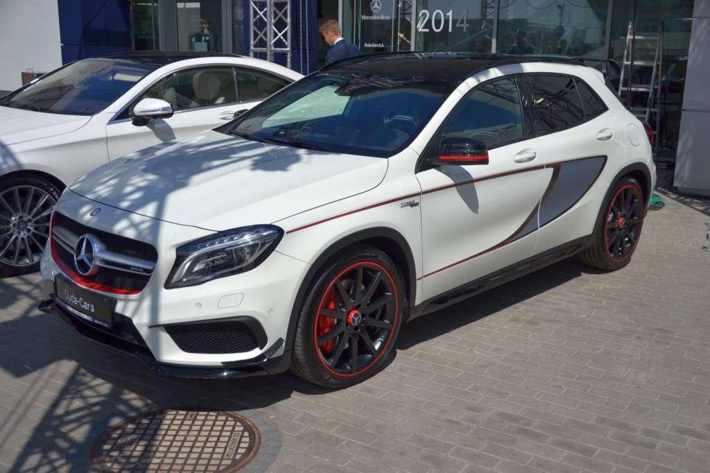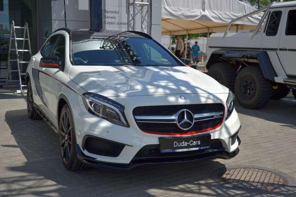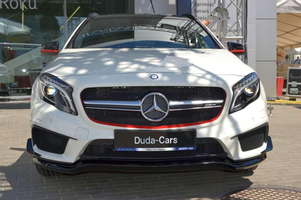 Także w poznańskim salonie mogliśmy po raz pierwszy zobaczyć najmocniejszego kompaktowego SUV-a na świecie, prezentowanego jak dotąd jedynie na specjalnych, zamkniętych pokazach. Mercedes GLA 45 AMG to prawdziwa perła z Affalterbach. 2-litrowy silnik turbo pod maską GLA 45 AMG generuje moc 360 KM oraz 450 Nm maksymalnego momentu obrotowego, a pod względem mocy uzyskanej z jednego litra pojemności – 181 KM – plasuje się na równi z autami supersportowymi. Kolejną zaletą jest małe zużycie paliwa – średnio 7,5 l/100 km. Od 0 do 100 km/h przyspiesza w 4,8 s i rozwija prędkość maksymalną 250 km/h (ograniczoną elektronicznie). Połączenie napędu na obie osie AMG 4MATIC oraz 7-stopniowej przekładni AMG SPEEDSHIFT DCT zapewnia najwyższą wydajność i niezawodną trakcję. Wnętrze SUV-a łączy sportową atmosferę z najwyższą jakością. Uwagę zwracają wyprofilowane fotele pokryte mieszanką skóry ARTICO i tkaniny DINAMICA z czerwonymi przeszyciami, czerwone pasy bezpieczeństwa oraz elementy ze szczotkowanego aluminium. Trójramienna kierownica wielofunkcyjna obszyta skórą nappa zapewnia pełną kontrolę nad autem, a wskaźniki w tubach rozdzielone kolorowym wyświetlaczem dostarczają kierowcy niezbędne informacje.