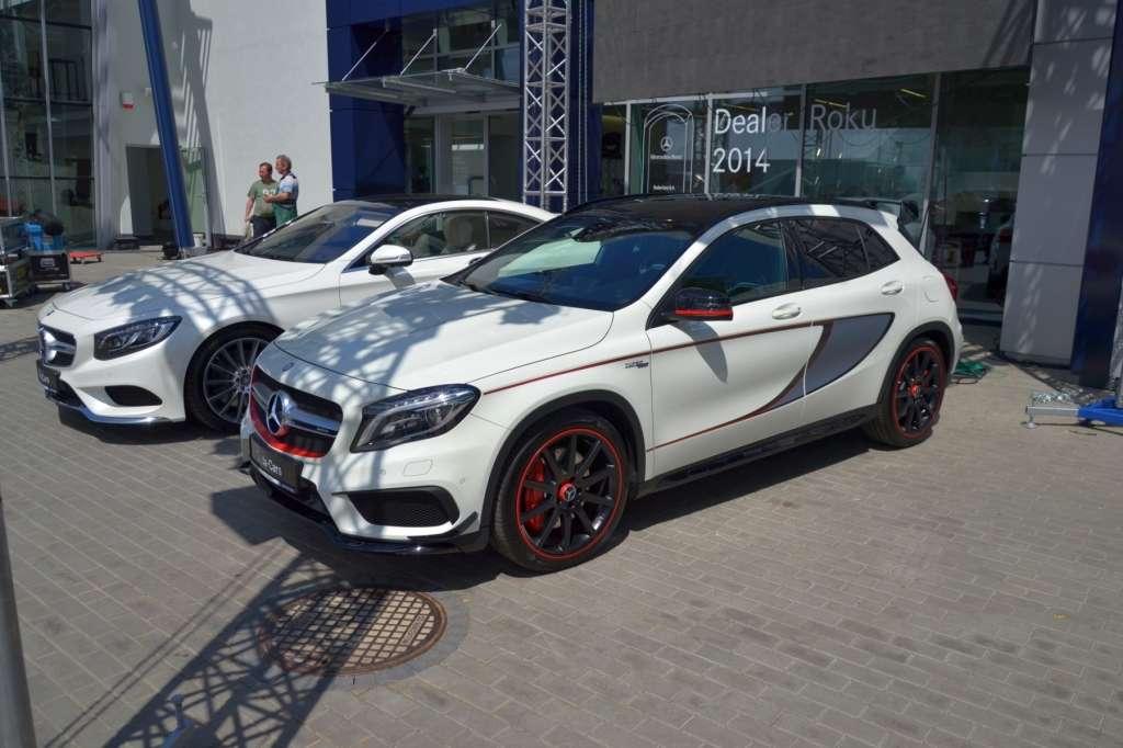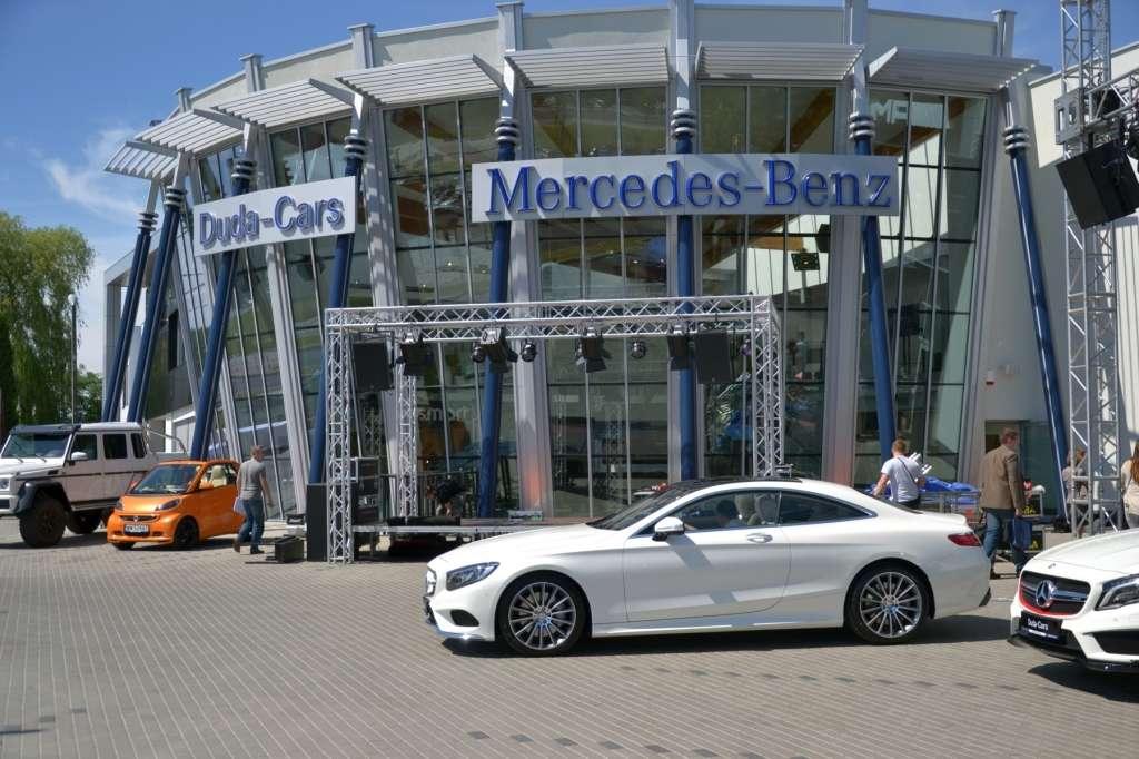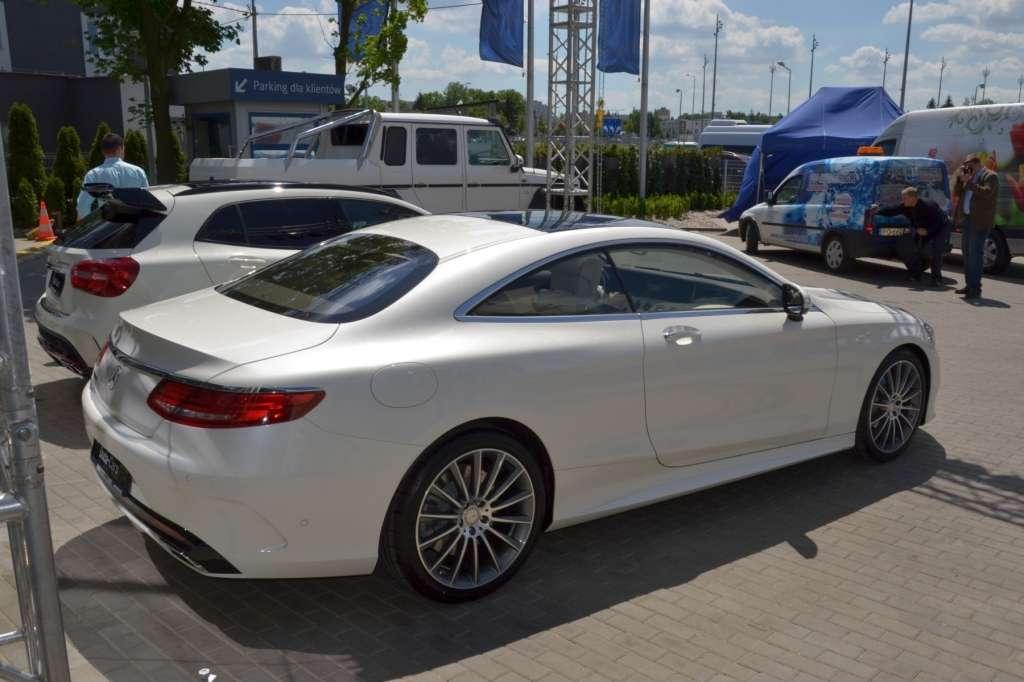 Uroczyste otwarcie nowego salonu było okazją do zaprezentowania dziennikarzom oraz zaproszonym gościom trzech nowych, niezwykłych modeli, jeszcze przed ich oficjalną rynkową premierą. Wyjątkowe samochody wymagają wyjątkowej oprawy. Dlatego też prezentację modelu S 500 Coupé poprowadził ambasador marki, Michał Żebrowski. Skupmy się jednak na samym aucie, które można bez wątpienia uznać za jedno z najpiękniejszych Coupé na rynku. Ta dwudrzwiowa limuzyna zasilana jest jednostką V8 biturbo o pojemności 4663 ccm i mocy 455 KM. Klasa S Coupé to pierwszy na świecie samochód z "widzącym zawieszeniem" MAGIC BODY CONTROL wzbogaconym o funkcję pochylania w zakrętach. Auto „kładzie się” w zakrętach podobnie do motocyklisty lub narciarza. Celem nowej funkcji nie jest umożliwienie osiągania wyższych prędkości, ale zwiększenie przyjemności prowadzenia i komfortu jazdy – zwłaszcza na pozamiejskich drogach. Podobnie jak limuzyna Klasy S, nowe Coupé dostępne jest z licznymi systemami wspomagającymi z rodziny "Intelligent Drive". Należą do nich m.in.: układ zapobiegawczej ochrony PRE-SAFE® z funkcją wykrywania pieszych, aktywny tempomat DISTRONIC PLUS wraz z funkcją Steer Assist i Stop&Go Pilot, asystent hamowania BAS PLUS ze wspomaganiem na skrzyżowaniach, układ kontroli pasa ruchu Active Lane Keeping Assist, adaptacyjne światła drogowe Adaptive High-beam Assist Plus oraz wspomagający jazdę nocą system Night View Assist Plus. Nadwozie nowego gran turismo mierzy 5027 mm długości, 1899 mm szerokości, 1411 mm wysokości przy rozstawie osi równym 2945 mm. Niewątpliwą atrakcją są dostępne w wyposażeniu dodatkowym unikalne przednie lampy ozdobione 47 kryształami Swarovskiego. 17 kryształowych kamieni tworzy kształt świateł do jazdy dziennej, a 30 okrągłych koralików wypełnia moduł kierunkowskazów. Lista bogatego wyposażenia opcjonalnego obejmuje m.in.: pakiet AIR BALANCE z funkcją rozpylania zapachu i jonizacji, elektryczne podgrzewanie podłokietnika, przednie fotele z funkcją masażu ENERGIZING z efektem wykorzystania gorących kamieni oraz wyświetlacz typu head-up, pokazujący najistotniejsze informacje na przedniej szybie samochodu.