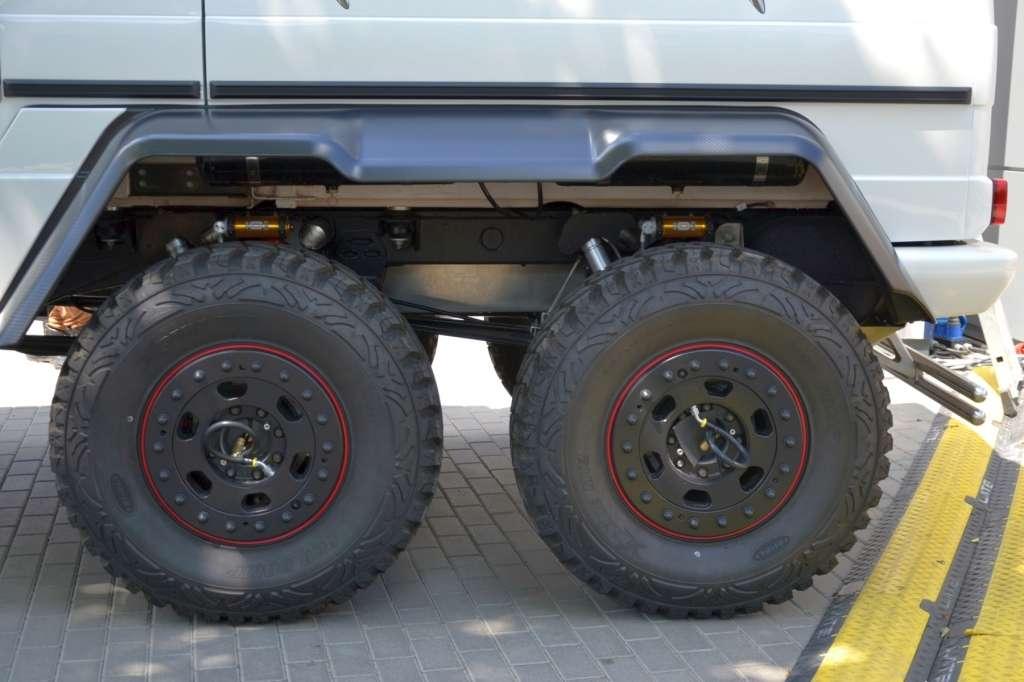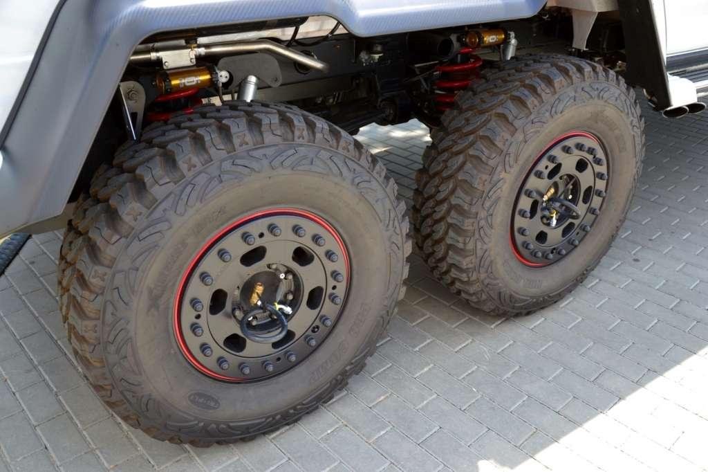 Trzyosiowe monstrum stworzone z myślą o dubajskich szejkach trafiło w końcu do kraju nad Wisłą. Co ciekawe auto zamówiło już 6 klientów, a spośród 4, które trafiły już do rąk nabywców, 3 kupiono w poznańskim salonie Duda-Cars. Jak widać, cena oryginalności ustalona na poziomie blisko 2,5 mln zł nie dla wszystkich jest przeszkodą. Kolos o masie 3,7 t rozpędza się do 100 km/h w około 6 sekund, a maksymalnie osiągnie 160 km/h, zużywając przy tym średnio 18 litrów oleju napędowego na 100 kilometrów. Źródłem mocy jest 5,5-litrowy silnik V8 biturbo, który generuje 544 KM i 758 Nm momentu obrotowego. Napęd wędruje do wszystkich sześciu kół za pośrednictwem 7-biegowej przekładni automatycznej 7G-TRONIC. Samochód został stworzony przede wszystkim do ekstremalnej jazdy w terenie. Pomaga mu w tym kąt natarcia wynoszący 52 stopnie, kąt zejścia równy 54 stopnie oraz prześwit wynoszący aż 460 mm. Co więcej, kierowca ma możliwość zablokowania wszystkich pięciu dyferencjałów.