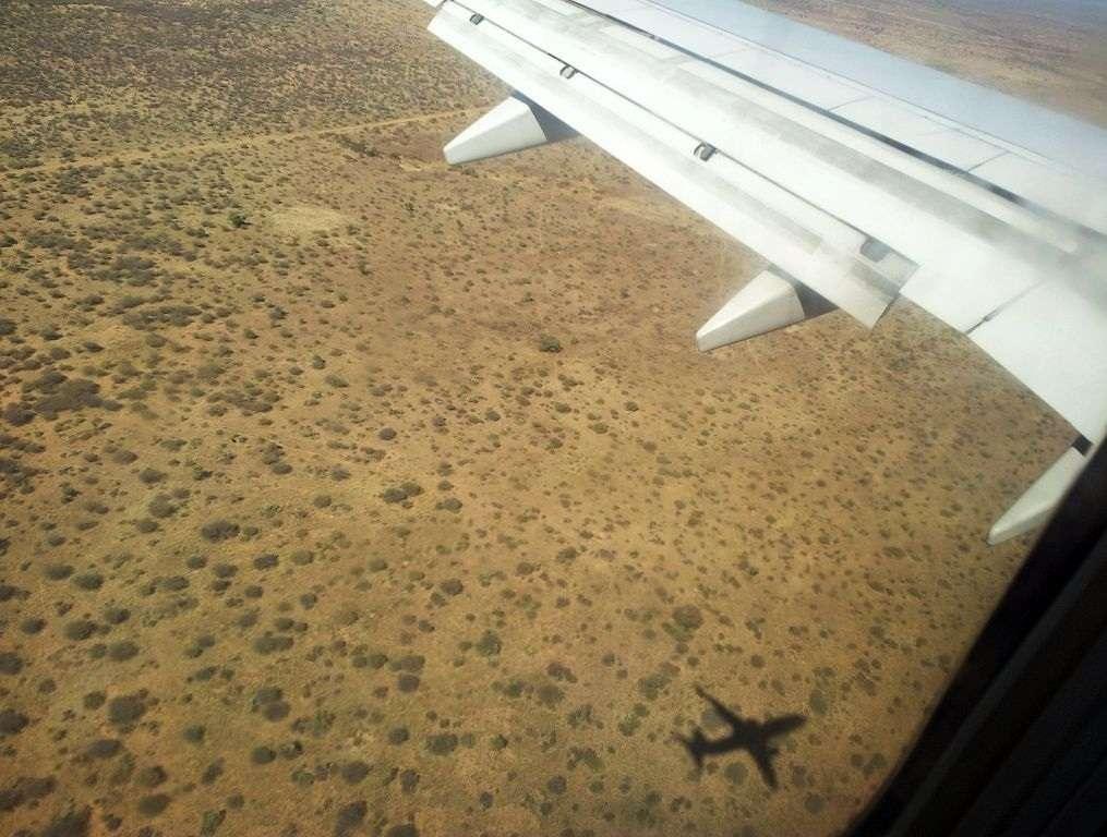 W Johannesburgu czekają na nas kolejne kontrole paszportowe i bagażowe, a także wybujała fantazja właścicieli sklepów na lotnisku, które wystawiają przed stoiskami strusie, żyrafy i inne ciekawostki do przyciągnięcia uwagi. My mamy jednak za mało czasu na podziwianie tych wabików,i śpieszymy prosto do wyjścia i po chwili wsiadamy do ostatniego tego dnia Boeinga, który zabiera nas do odległej o 2 godziny lotu na północ Namibii.