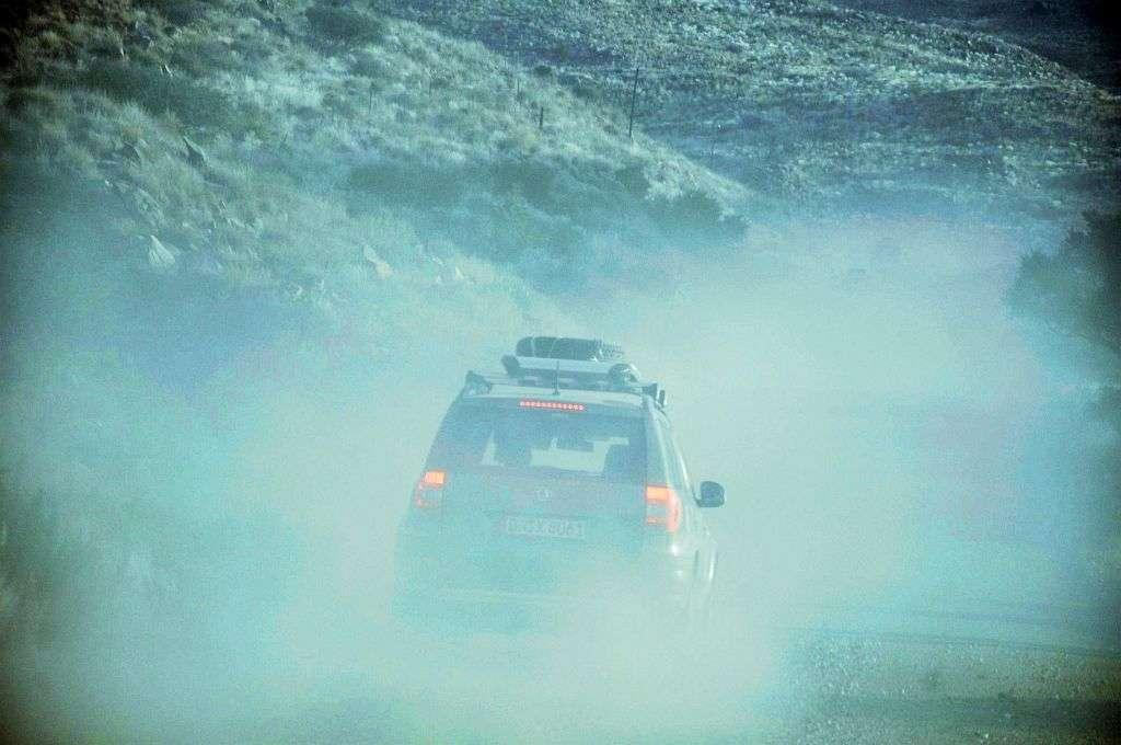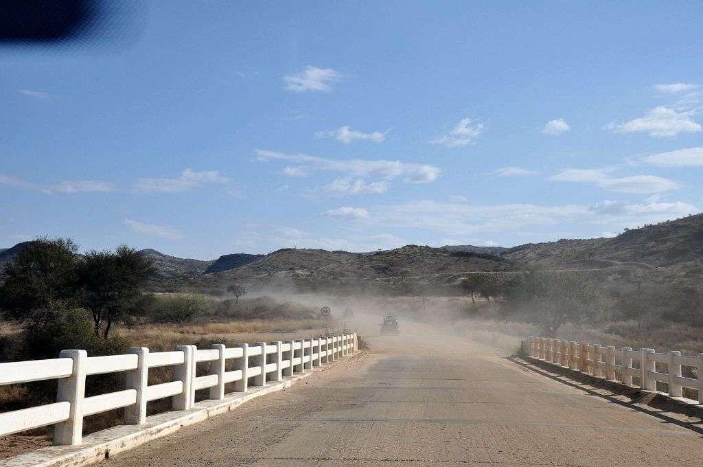 Aby doprowadzić do czołowego zderzenia, trzeba spełnić podstawowy warunek – trzeba mieć kogoś, z kim można by było się zderzyć. A z tym w Namibii jest bardzo krucho – średnio zatłoczoną drogę odwiedza kilkadzieśiat samochodów dziennie. Mniej zatłoczoną – zaledwie kilka aut dziennie. Wobec tego, kiedy pierwsze auto mijało się z samochodem, jadącym w przeciwnym kierunku, to nasz konwój był informowany o tym przez CB z takim zaangażowaniem, jakby mowa była co najmniej o przewróconej cysternie, leżącej w poprzek drogi i gotowej się zapalić.