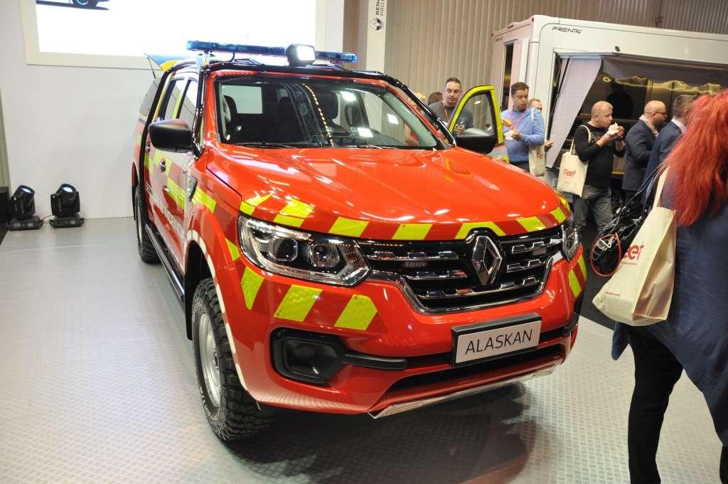 Kolejnym modelem Renault, pokazanym na targach, był Alaskan, czyli nowy pickup, produkowany dla Francuzów przez Nissana. Wnętrze jest niemal identyczne, jak w Navarze, różnice znajdziemy w pasie przednim. Alaskan wystąpił w wersji specjalnej, prezentując, jak może wyglądać, gdy zamówią go odpowiednie służby.