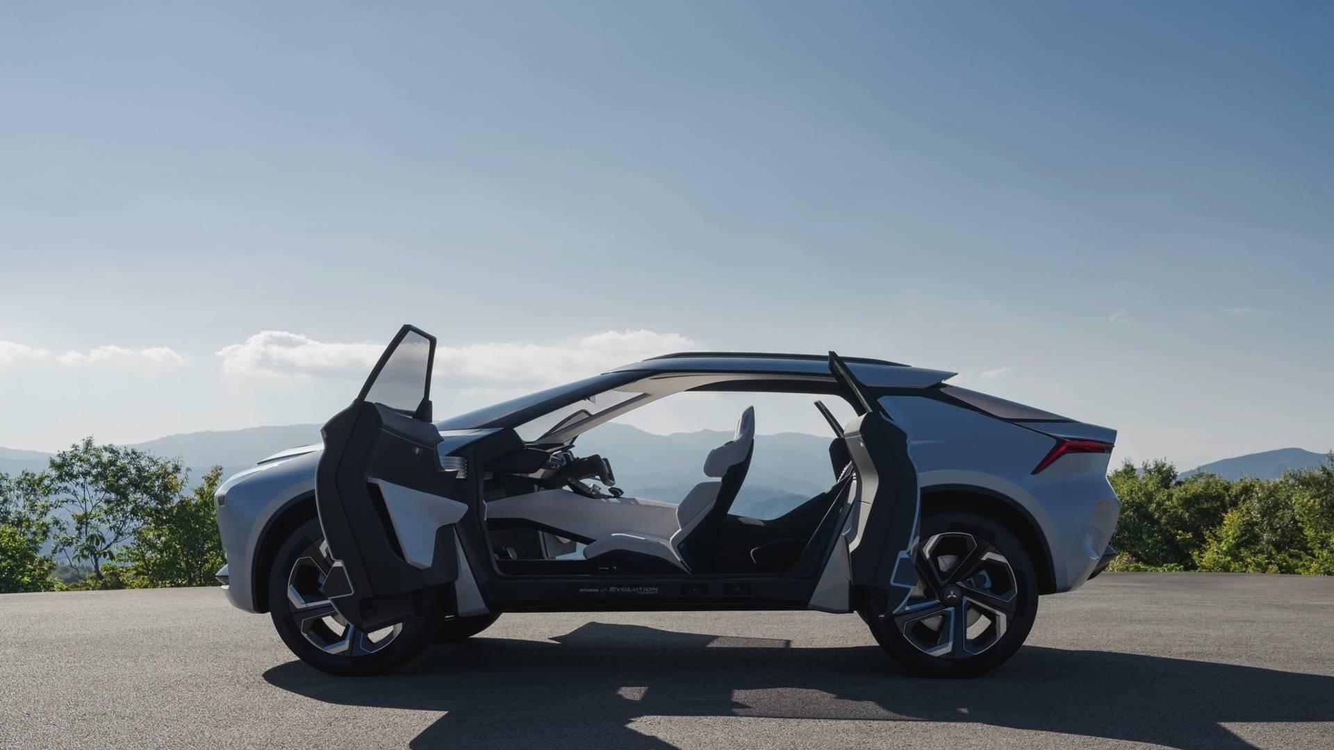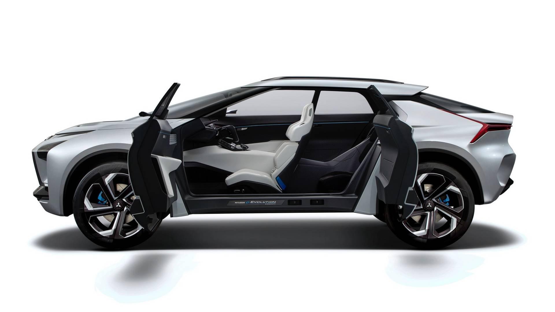 Po tym jak nazwa Eclipse „zmaterializowała się” w postaci SUV-a, przyszedł czas na kolejną legendarną nazwę Mitsubishi, a mianowicie Evolution. e-Evolution Concept to SUV o napędzie elektrycznym, w którym trzy silniki o wysokim momencie obrotowym napędzają obie osie – jeden przednią i dwa tylną. Zestaw akumulatorów umiejscowiono w środkowej części płyty podłogowej, co ma zapewnić obniżenie środka ciężkości i równomierny rozkład masy. Nadwozie ma dość agresywny wygląd i kształtem nawiązuje do aut sportowych. Z kolei wnętrze, do którego prowadzą długie przednie i otwierane „pod prąd” krótkie tylne drzwi, zapewnia miejsce 4 pasażerom na oddzielnych fotelach. Na środku deski rozdzielczej znajduje się duży panoramiczny wyświetlacz, otoczony po bokach dwoma mniejszymi, które wyświetlają obraz z zewnętrznych kamer, pełniących rolę wstecznych lusterek. Obecnie nie ma mowy o wprowadzeniu podobnego samochodu do produkcji, więc e-Evolution pozostanie póki co tylko prototypem.