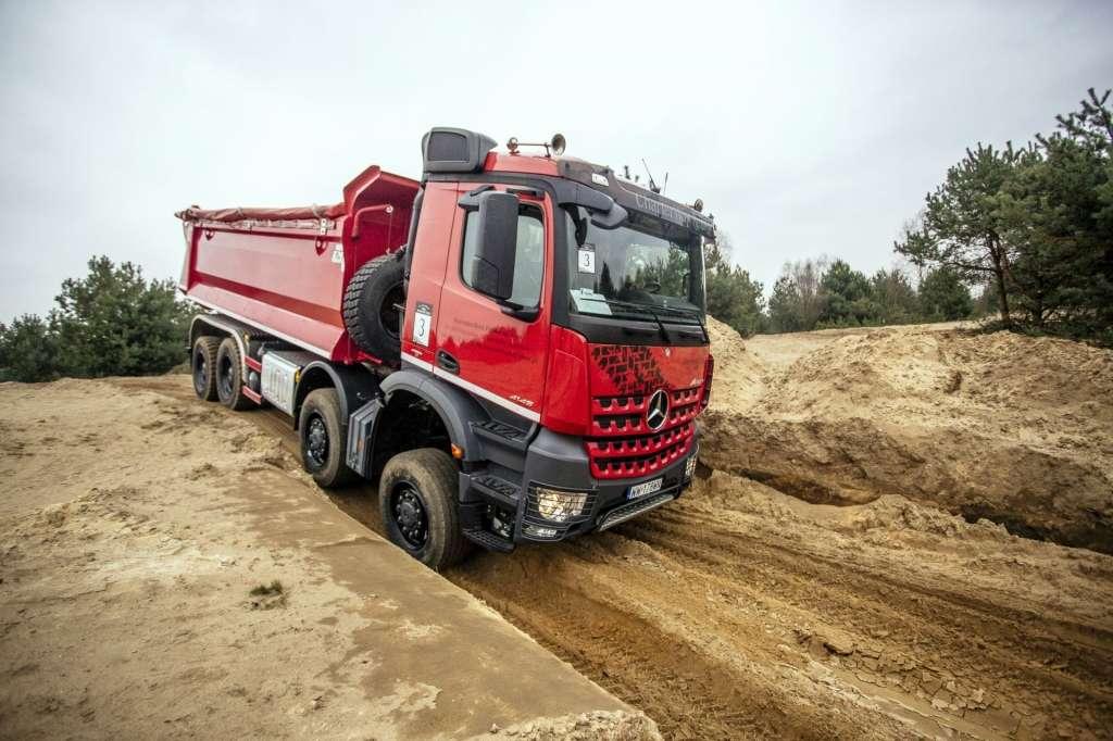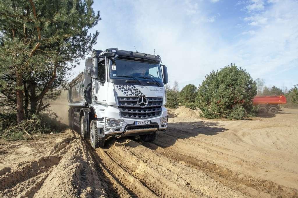 Wypada przedstawić głównych bohaterów zaczynając od Arocsa. Zdaniem Mercedesa jest to sztandarowy pojazd dedykowany budownictwu, a jak wiemy, a budowach bywa dość ciężko. Dlatego też producent oferuje auto w różnych wariantach tj. dwu-, trój- i czteroosiowych z napędem na część, lub wszystkie koła. Co więcej, jeśli ktoś wymaga lepszego manewrowania, może zdecydować się na montaż dwóch osi skrętnych, a także układu wspomagania kierownicy ServoTwin. Unikalnym rozwiązaniem w modelu Arocs jest oferowane opcjonalnie turbosprzęgło. Co to takiego? Otóż rozwiązanie to wyróżnia się odpornością na zużycie dzięki zastosowaniu sprzęgła hydrokinetycznego i zapewnia maksymalną wydajność podczas ruszania oraz manewrowania, zwłaszcza gdy wymaga tego znaczne obciążenie. Oczywiście nie zapomniano o ogromnej liczbie najróżniejszych możliwości zabudowy. Arocs może występować zarówno jako ciągnik, jak i podwozie. Wywrotki, betonomieszarki, hakowce i żurawie – to tylko kilka przykładów potencjalnych zabudów.
