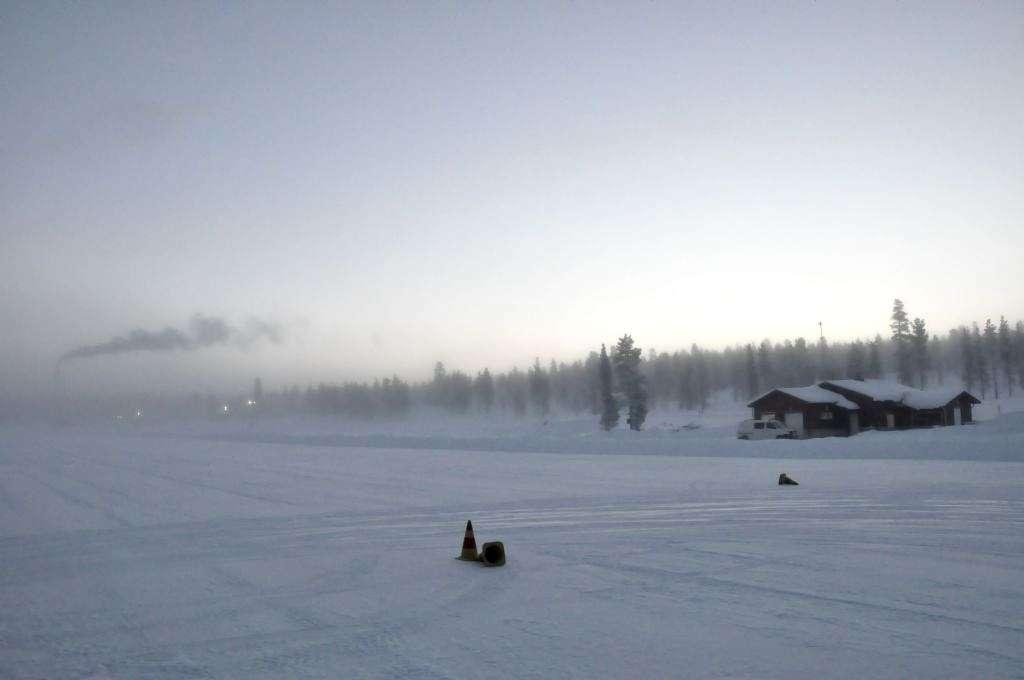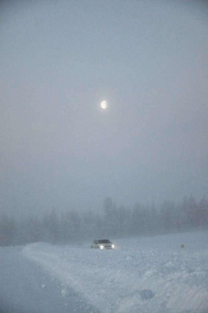 Przybyliśmy na miejsce około godziny 9 rano, kiedy niebo na południowym wschodzie już było jasne, a na ledwo rozświetlonym zachodzie wisiał upiorny księżyc. Zapowiadał się piękny, mroźny dzień, pełen okazji do zrobienia świetnych zdjęć aut na tle błyszczącego, białego śniegu.