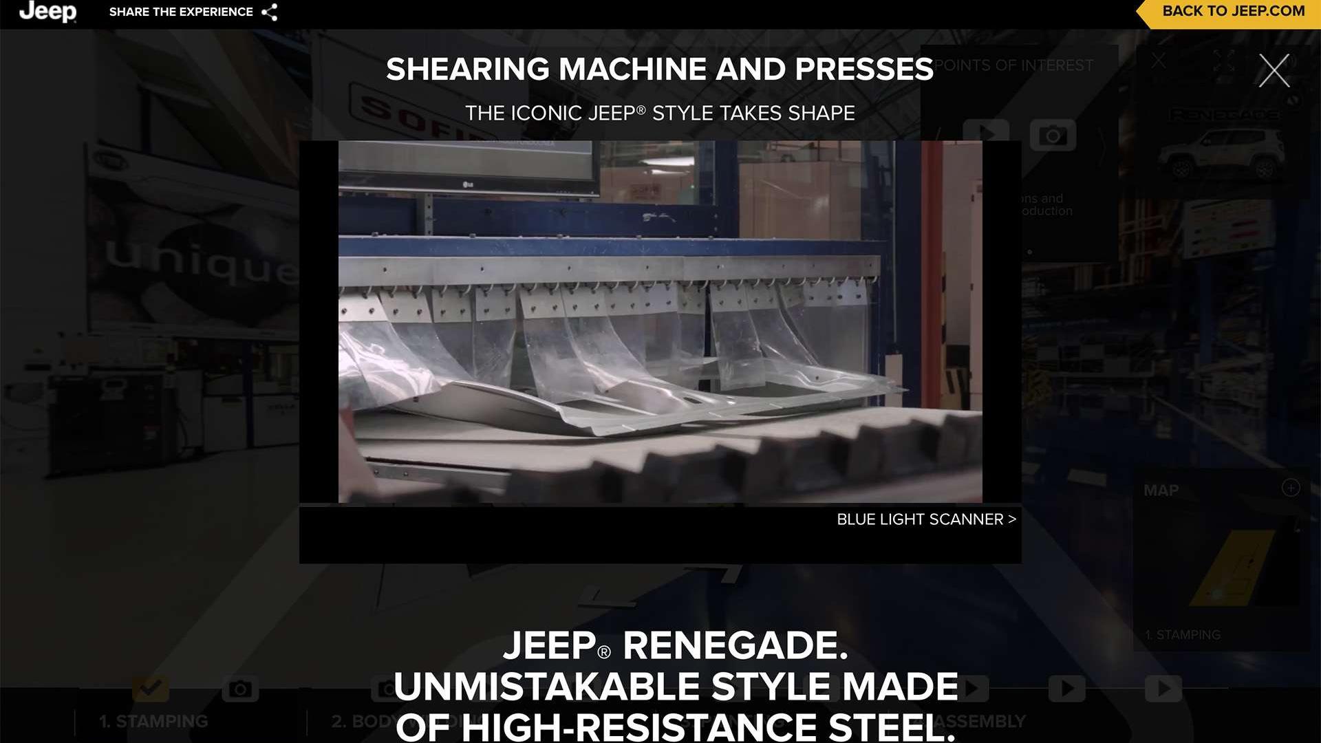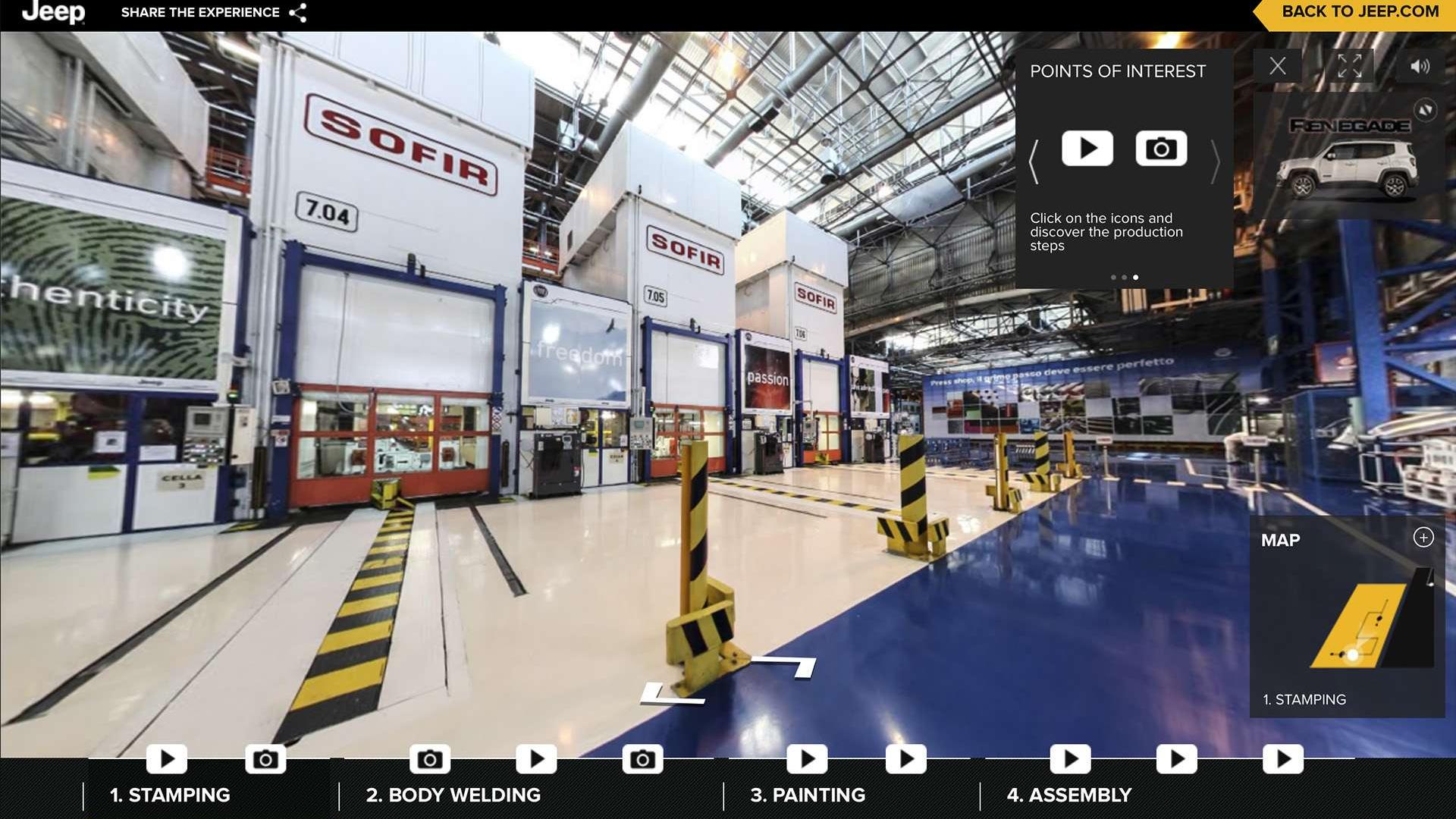 Przygotowanie wirtualnej wycieczki zajęło 3 dni i 3 noce. Linię produkcyjną Jeepa Renegade obrazuje 367 zdjęć panoramicznych i siedem 30-minutowych filmów, co łącznie zajęło aż 20 terabajtów pamięci dyskowej. Niestety nasze łącza nie są jeszcze w stanie szybko przesyłać takiej ilości danych, więc po kompresji czeka na nas 100 GB panoram. Całe przedsięwzięcie obejmuje ponad 450 000 metrów kwadratowych fabryki.