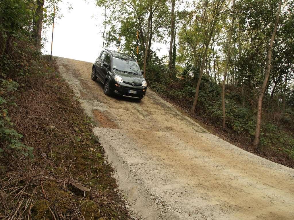 Do jazd próbnych Fiat udostępnił szutrowy odcinek z różnymi przeszkodami – stromymi podjazdami i zjazdami, pochyłościami oraz wszelakiej maści nierównościami. Panda 4x4 bardzo dobrze radziła sobie z wybojami. Zawieszenie nie dobijało i nie hałasowało nawet na największych z nich. Dzięki krótkim zwisom również pokonywanie wzniesień nie stanowiło problemu. Przedstawiciele Fiata podkreślali, że kątami natarcia, zejścia i rampowym Panda 4x4 zawstydza m.in. Nissana Qashqai oraz Mini Countryman.