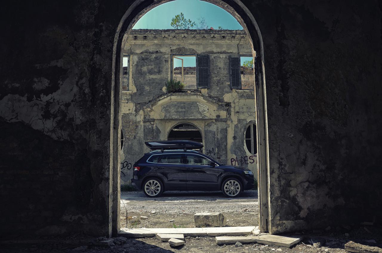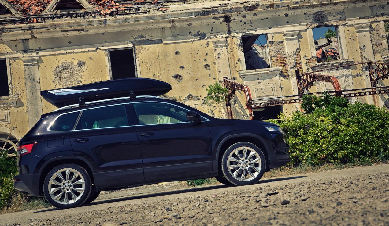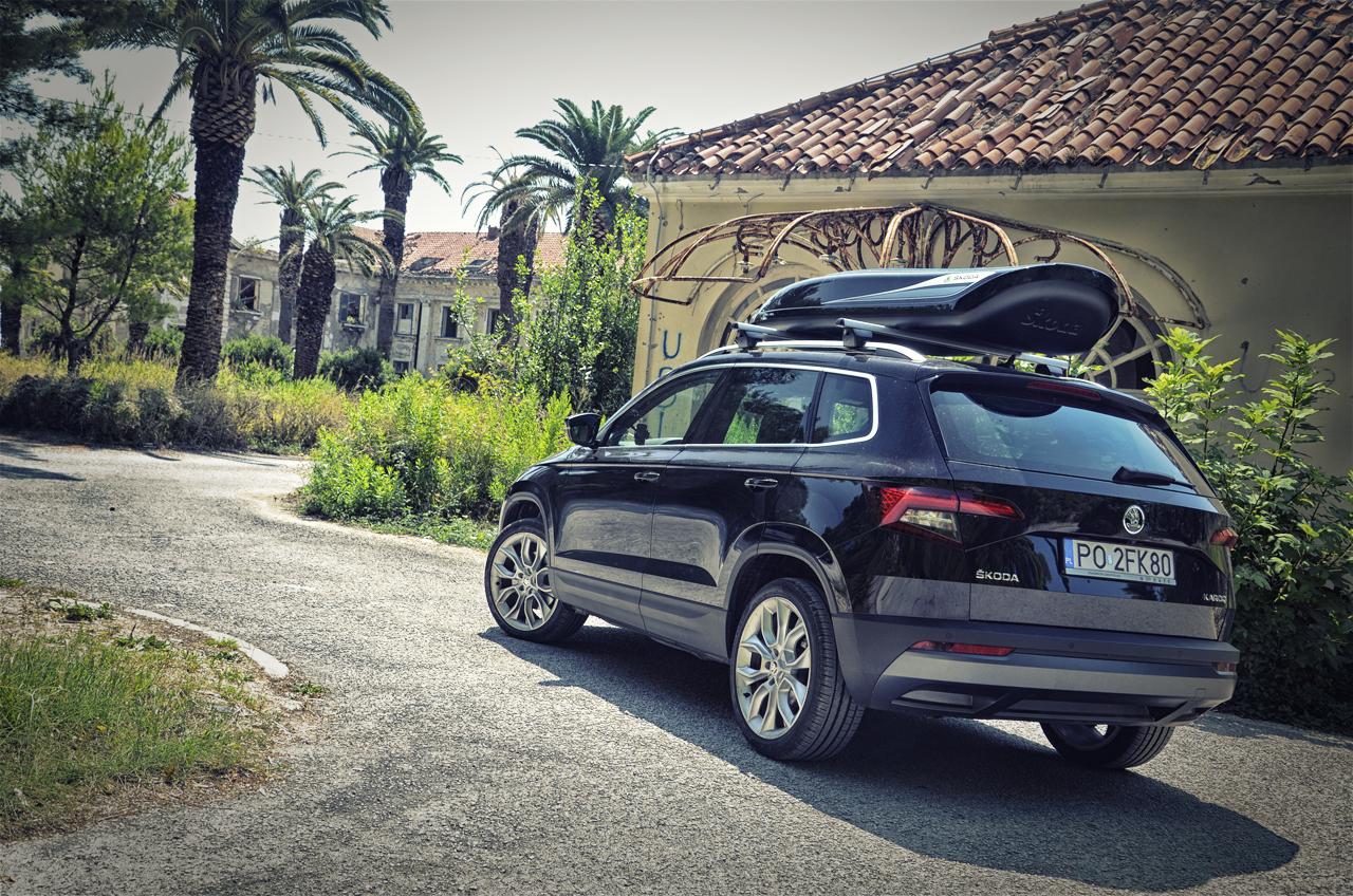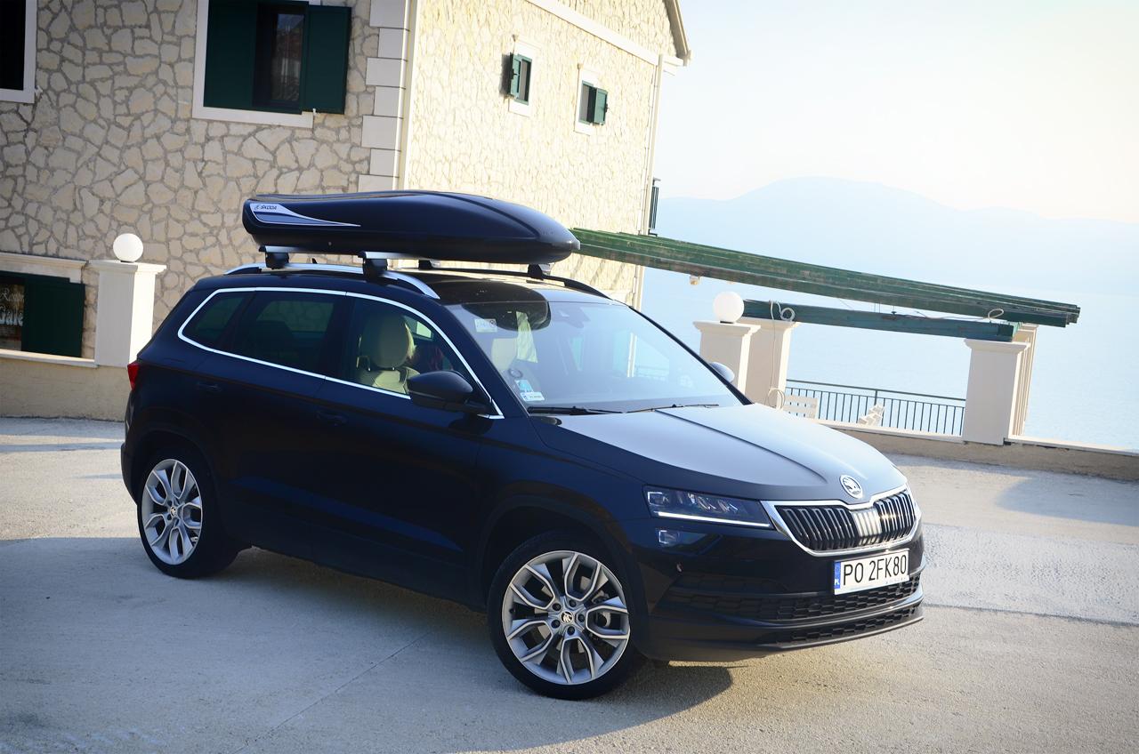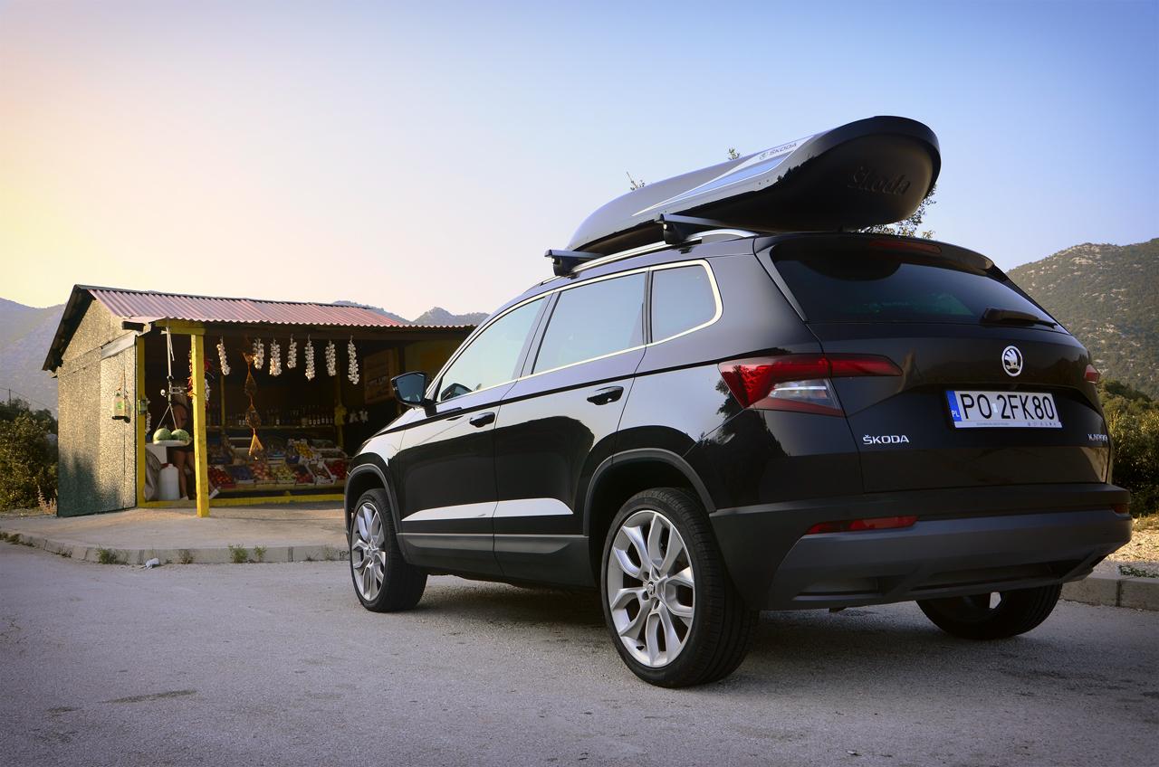 Uratował nas akcesoryjny kufer dachowy. To dodatkowe 1800 zł do ceny samochodu, plus 669 zł za belki poprzeczne, ale to też dodatkowe 381 litrów bagażu, który możemy ze sobą zabrać. W takiej konfiguracji Karoq spełnił już swoje zadanie.