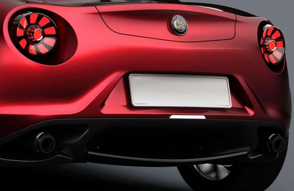 Nadwozie 4C Concept fascynuje stylistycznym pięknem niezależnie od tego, od której strony na nie spojrzymy. Z przodu uwagę zwracają duże reflektory, wyraźne przetłoczenia maski oraz masywne wloty powietrza przedzielone grillem o typowym dla Alfy, trójkątnym kształcie. Tył zaś skupia naszą uwagę na muskularnych liniach zderzaka, delikatnym spojlerze oraz nowoczesnych lampach a la Ferrari.