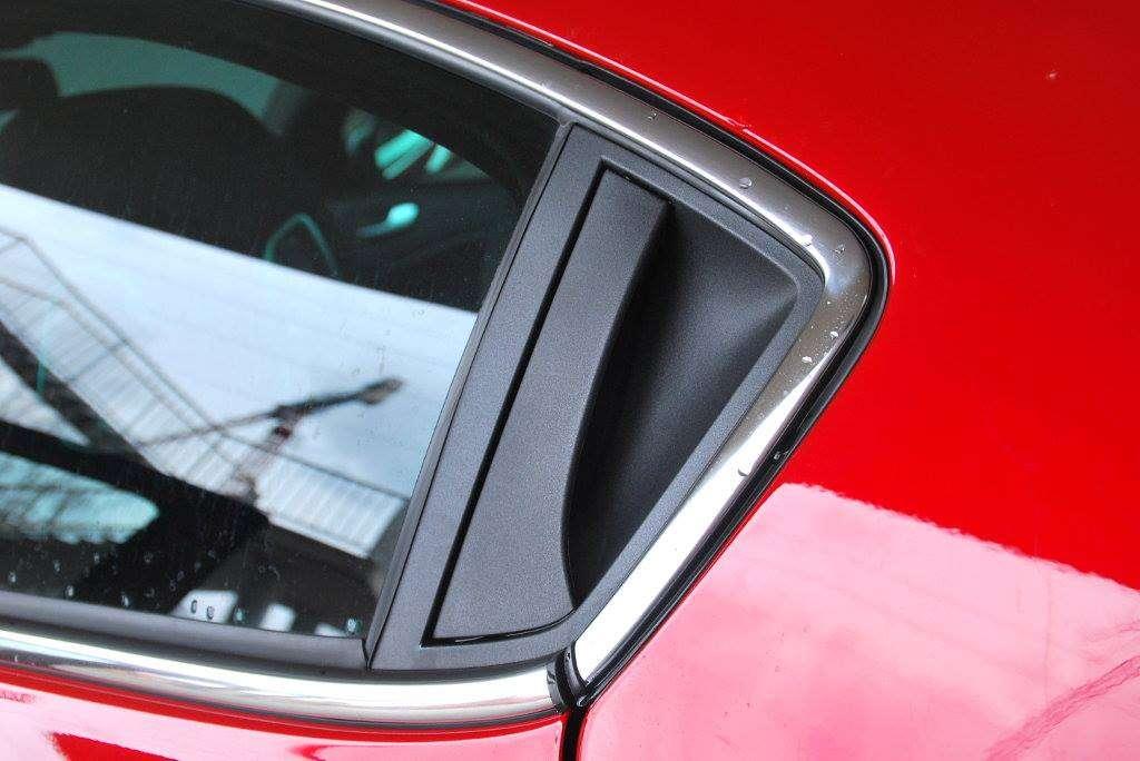 Na bodźce wzrokowe - w przypadku naszego testowego egzemplarza - z pewnością pewien niebagatelny wpływ miał pakiet QV Line, w jaki nasza bohaterka została przyodziana. Literki QV to oczywiście nawiązanie do najmocniejszej odmiany Quadrifoglio Verde, a sam pakiet zawiera takie elementy, jak przyciemniane tylne szyby, dodatkowe spojlery, większe i polakierowane na czerwono zaciski hamulców, czy oksydowane lusterka, klamki, grill oraz obramowania świateł, zaś we wnętrzu m.in. aluminiowe listwy progowe, nakładki na pedały i podnóżek kierowcy. Za pakiet zapłacimy 2,5 tys. zł, ale chyba warto, jeśli chcemy wzbudzić jeszcze większą zazdrość wśród sąsiadów czy kolegów z pracy.