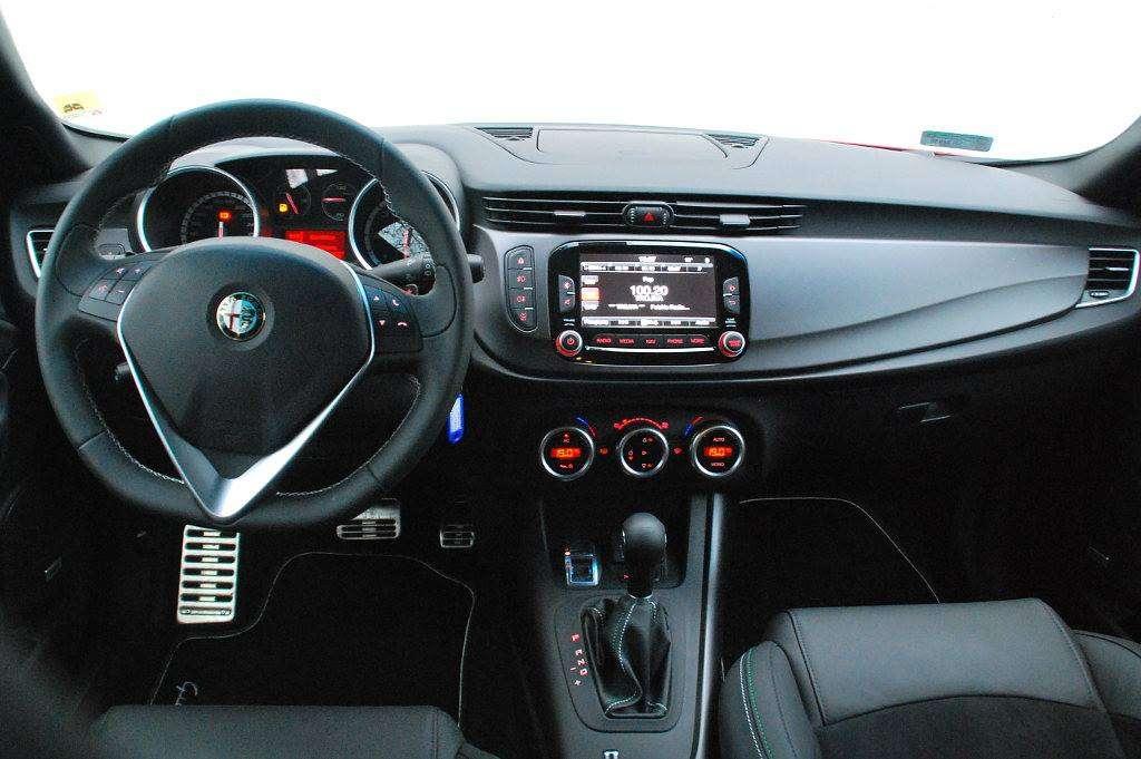 Wnętrze Giulietty również można podsumować słowem "atrakcyjne", choć, jeśli będziemy szukać wielu różnych nieszablonowych rozwiązań, możemy być nieco zawiedzeni. Oczywiście są klasyczne głębokie tuby zegarów startujących z godziny szóstej, jest przyjemna dla oka animacja powitalna przy uruchamianiu silnika, są nieźle wyprofilowane fotele ze zintegrowanymi zagłówkami i wytłoczonym logo marki. Całość jest bardziej elegancka niż sportowa, mimo wspomnianych aluminiowych nakładek na pedały czy czarnej podsufitki, co przez niektórych może być uznane za wadę.