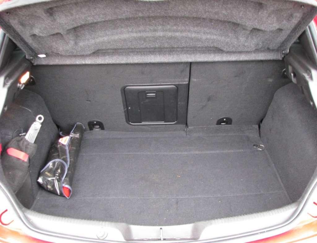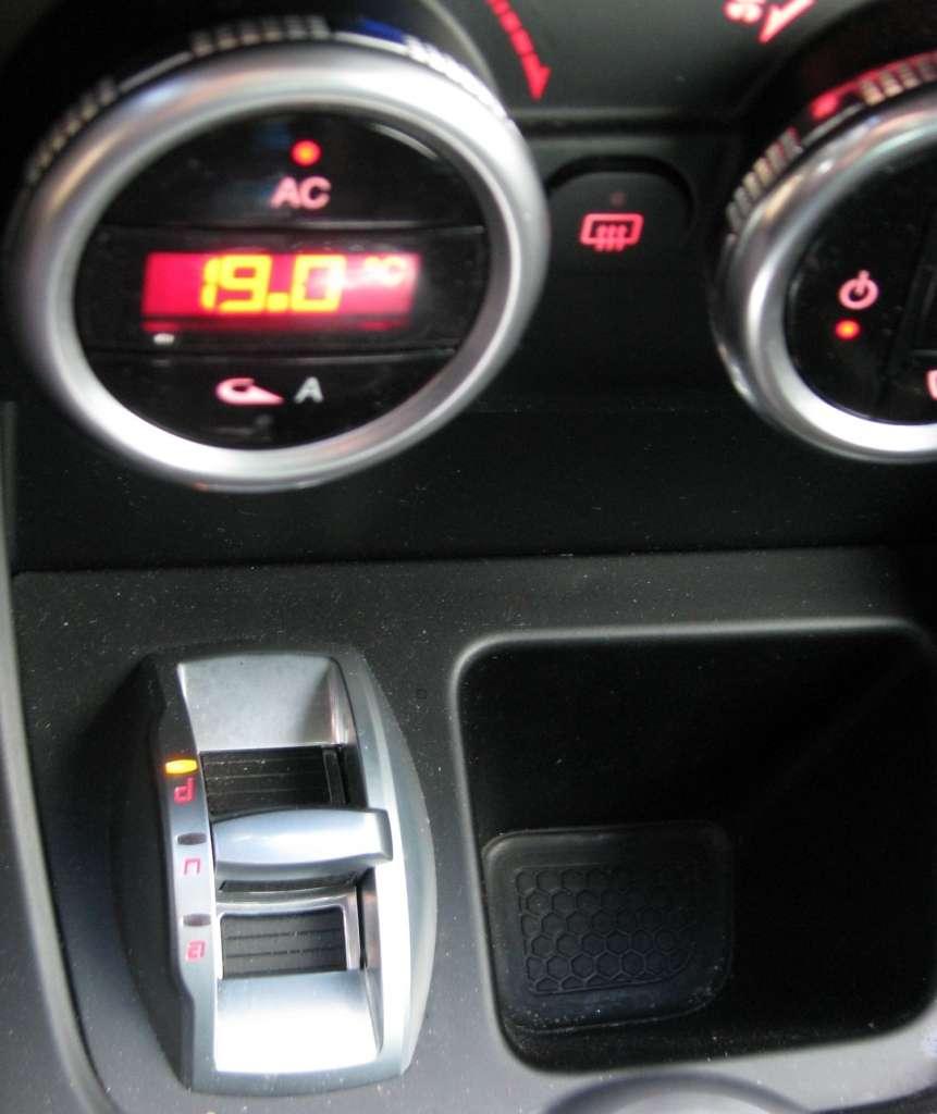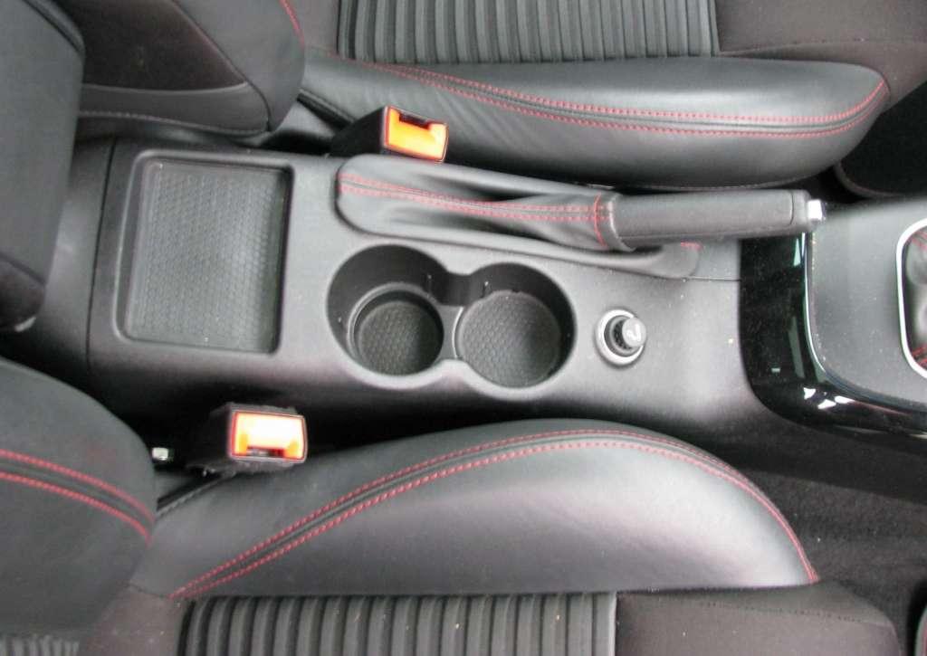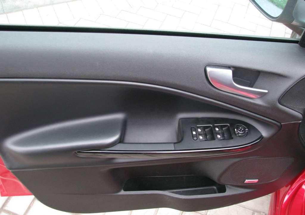 Na szczęście ze środka samochodu go nie widać. Siedząc na miejscu kierowcy mamy za to do dyspozycji najlepsze z tego co się ze znaczkiem koniczynki łączy. Deska rozdzielcza wydaje się mieć sportowy, surowy charakter. Centralna konsola jest zredukowana do kilku niewielkich paneli sterowania, umieszczonych na desce rozdzielczej ze szczotkowane aluminium. Nietypowo mały jest zwłaszcza segment radia z oddzielną szczeliną odtwarzacza CD i miejscem na kartę SD. Sterowanie klimatyzacją to trzy osobne, duże pokrętła z nieruchomymi środkowymi częściami , na których są przyciski i wyświetlacze temperatury. Duże walce pokręteł klimatyzacji, mały panel radia i rząd stylizowanych na małe dźwigienki przełączników pomiędzy nimi tworzą nastrój sportowych aut w stylu retro. Zdecydowanie nowoczesnym elementem jest natomiast wysuwany ze szczytu konsoli ekran nawigacji.
