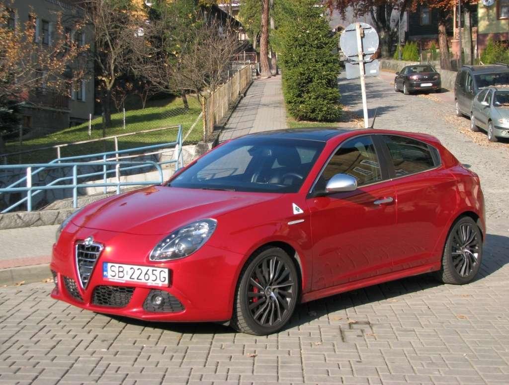 Giulietta to kompaktowy samochód zbudowany na całkowicie nowej platformie. Nadwozie ma długość 435 cm, szerokość 180 cm, wysokość 146 cm i rozstaw osi 263 cm. Zwarta bryła ma dynamiczne linie i wiele interesujących detali, takich jak fantazyjne tylne światła czy atrapa chłodnicy, na której chromowa obwódka została umieszczona kilka centymetrów od krawędzi. Lampy wykonane częściowo z diod LED z długimi, wąskimi bocznymi kierunkowskazami włącznie, ukryta klamka tylnych drzwi czy felgi przypominające wloty powietrza silników samolotu nadają jej charakter pięknie unowocześnionego retro. Jedynym zgrzytem jest dla mnie umieszczony nad bocznymi migaczami znak quadrifoglio czyli koniczynki – wyróżniający tą wersję znak rozpoznawczy. Niestety biały, plastykowy trójkąt z zielonym listkiem koniczyny wygląda jak magnes na lodówkę.