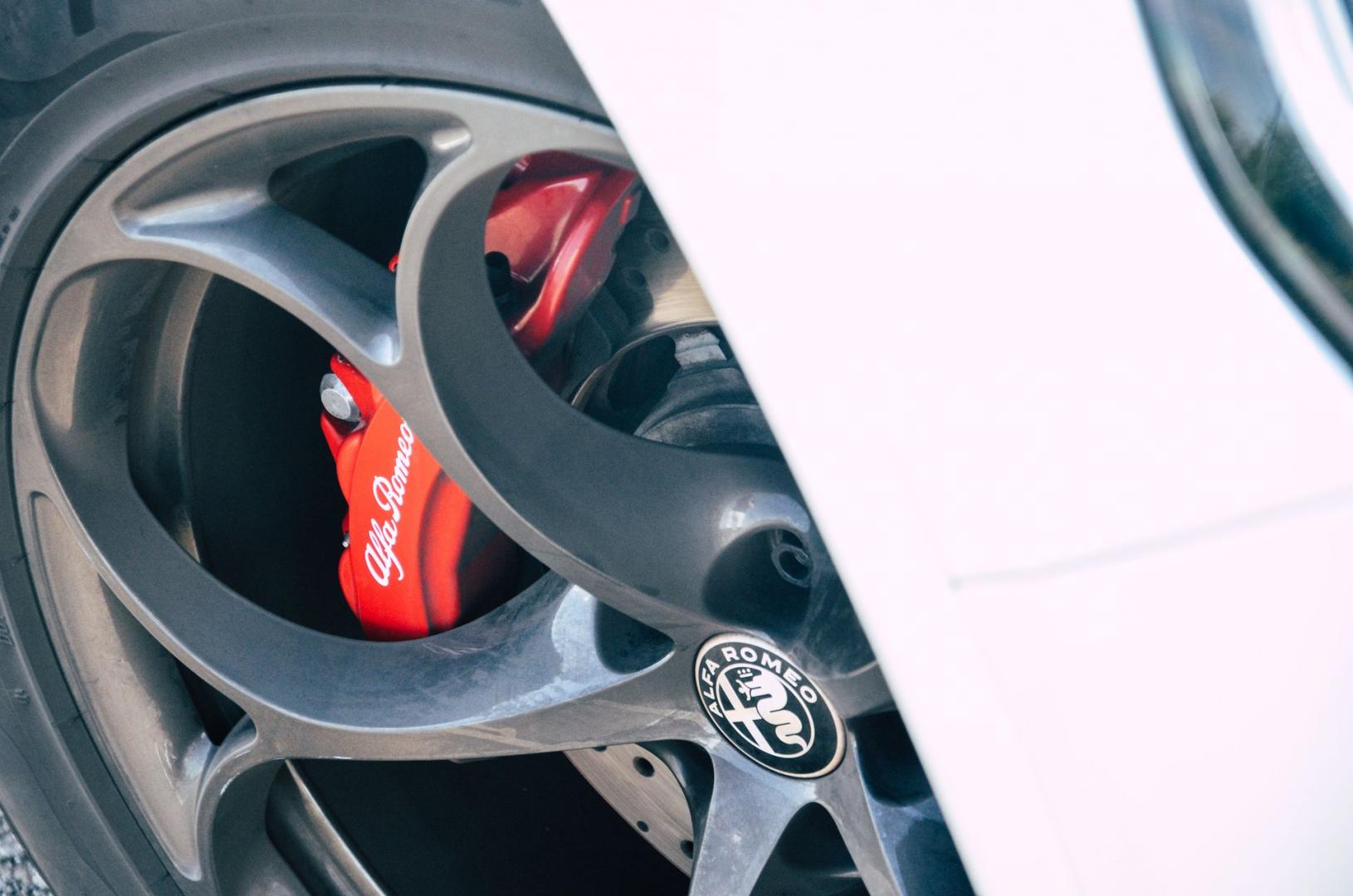 Wersja Quadrifoglio została oczywiście odpowiednio przystrojona w sportowe dodatki. To wloty powietrza na masce, charakterystyczne zderzaki, dyfuzor, nadęte nadkola i 20-calowe felgi z lekkiego stopu. Wisienką na torcie jest tu układ wydechowy zakończony czterema rurami.