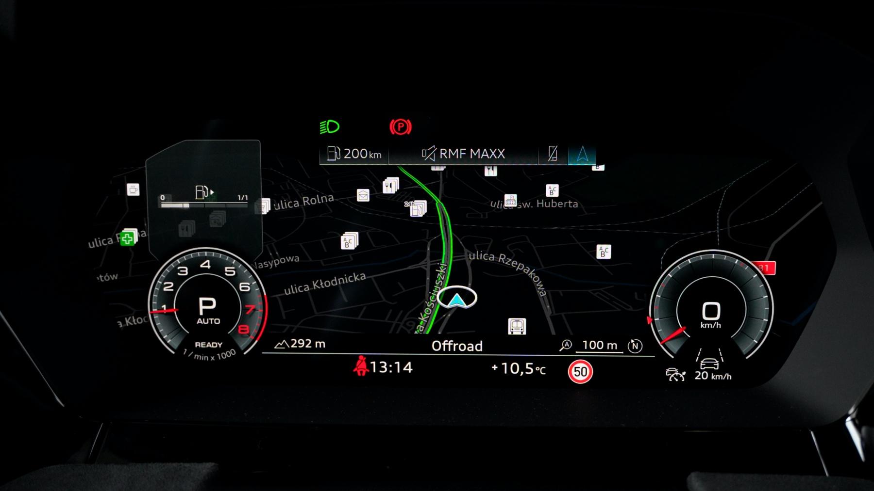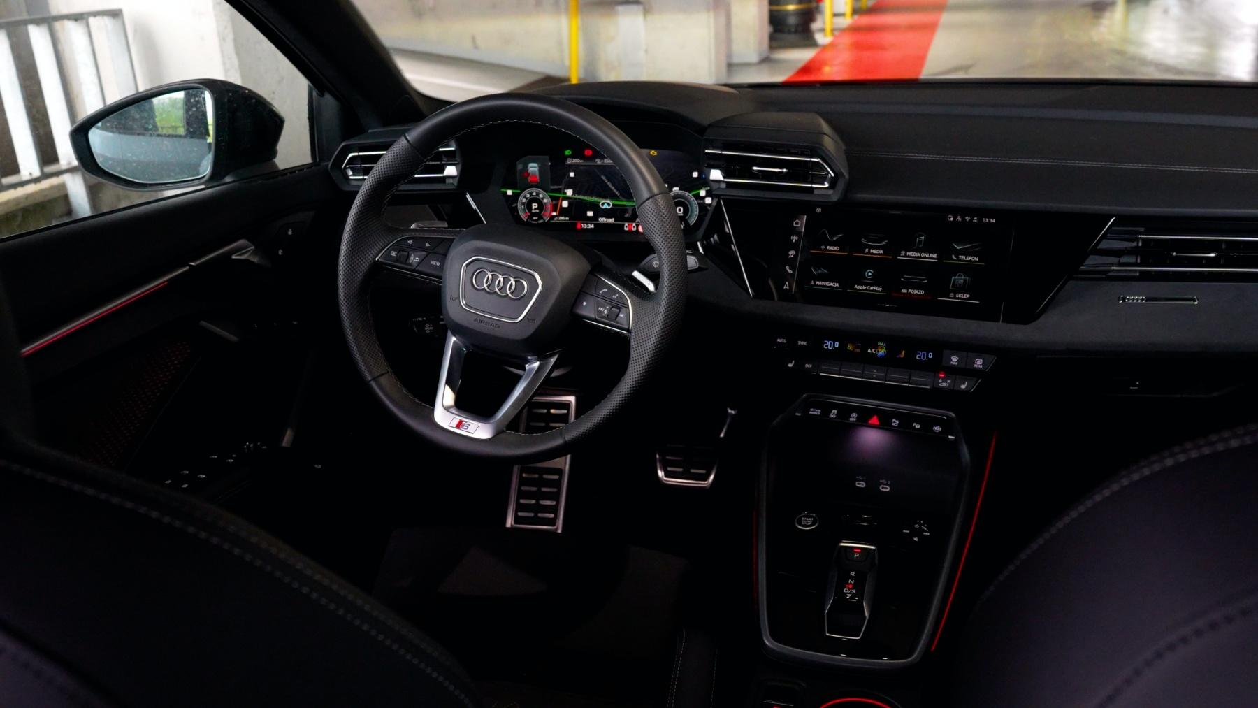 Wraz z jakością w parze szła zwykle ergonomia obsługi. Czy także pod tym kątem A3 jest wzorem do naśladowania? I tak i nie, już tłumaczę. Na pewno muszę docenić wygodną obsługę poszczególnych funkcji, w tym cyfrowych zegarów, za pomocą pokręteł i przycisków na kierownicy, a także zgrabny selektor przekładni S Tronic. Podoba mi się również responsywność centralnego, 10,1-calowego wyświetlacza systemu infotainment i jego logiczne, poukładane menu. Dobrze też, że nawigacja ukazuje aktualne natężenie ruchu. Plus również za zachowanie klasycznego panelu klimatyzacji z przyciskami i przełącznikami. Co zatem mi się nie podoba? Otóż wspomniane przełączniki do zmiany temperatury i siły nadmuchu nie są podświetlane, przez co po zmroku klimą sterujemy trochę po omacku. Nie do końca sprawdzonym pomysłem jest też gładzik na konsoli środkowej do regulacji głośności i zmiany utworu. Wreszcie zabrakło mi choćby paru fizycznych przycisków-skrótów od multimediów. Generalnie polubiłem jednak kabinę A3 Allstreet i dość szybko się z nią oswoiłem.