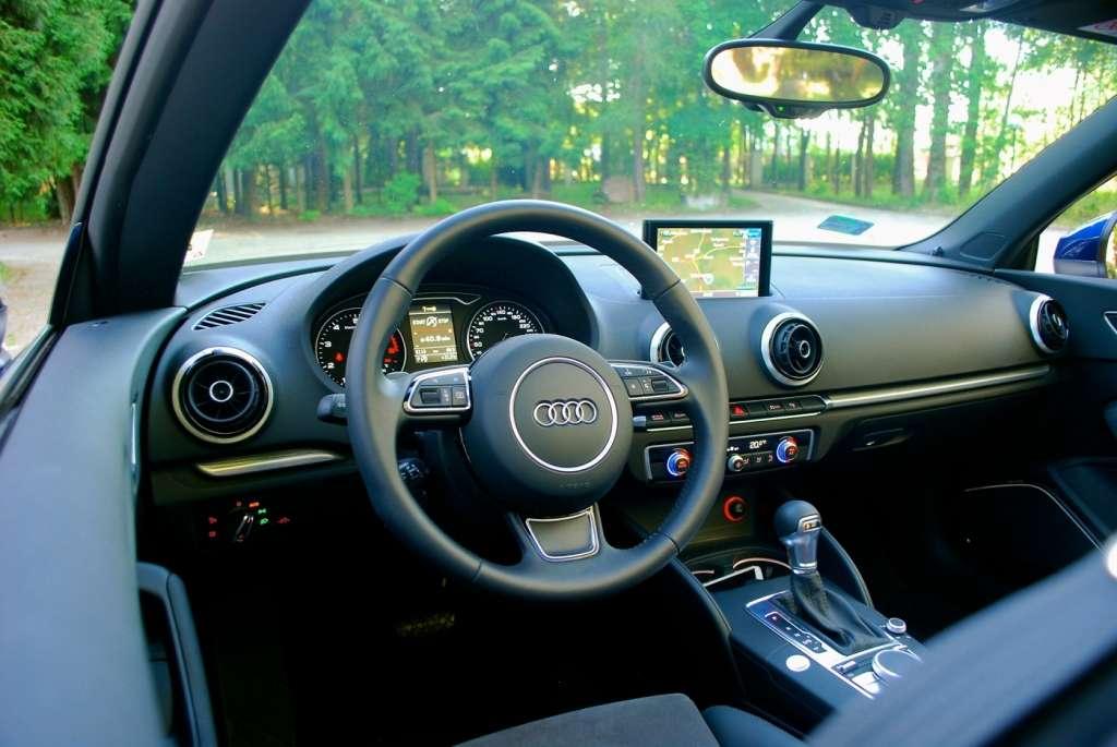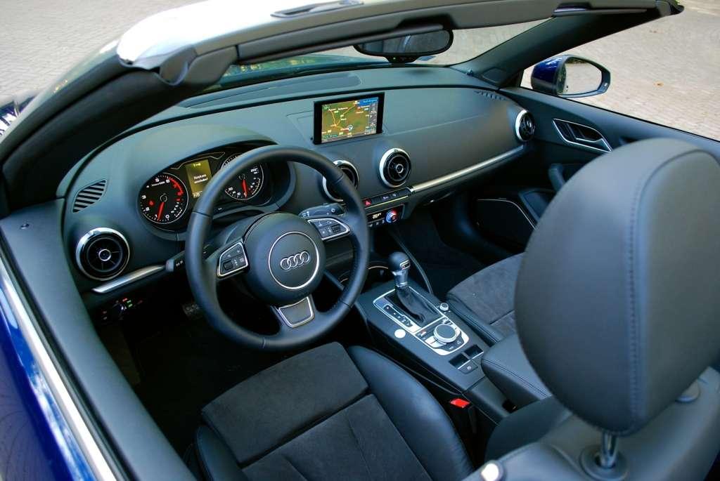 Wnętrze naszego kabrioletu wygląda praktycznie tak samo, jak w każdej innej odmianie A3. Jest surowo, prosto, a po zamknięciu dachu dość klaustrofobicznie. Materiały użyte do wykończenia wnętrza można uznać za dobre, ale jeśli spodziewacie się jakości z poziomu modelu A6 i wyżej, to muszę Was rozczarować. A3 to pewnego rodzaju „entry level” do aut luksusowych, więc dostaniemy tu przedsmak tego, co może nas spotkać w droższych modelach. Najważniejsze, że jest czytelnie oraz logicznie i zaraz po usadowieniu na swoim miejscu, znamy rozmieszczenie wszystkich potrzebnych pokręteł czy włączników.