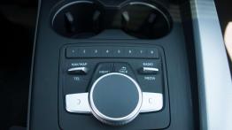 Obsługa systemu Audi MMI została uproszczona do dwóch przycisków i pokrętła, ale zadbano też o ergonomię innych elementów deski rozdzielczej. Funkcje pogrupowane są „listwami”. Na jednej z nich znajdziemy przyciski służące do zmiany ustawień samochodu. Znajdziemy tam drive select, przycisk dezaktywacji systemu Start/Stop, dezaktywacji kontroli trakcji, możliwość manualnego uruchomienia czujników parkowania i przycisk asystenta parkowania, który zaparkuje nasz samochód równolegle bądź prostopadle. Ten ostatni w wielu samochodach traktujemy jako zbędny gadżet, ale wystarczy obejrzeć na YouTube parę filmów z gatunku „parking fail”, by uzmysłowić sobie, że niektórzy powinni korzystać z niego regularnie.