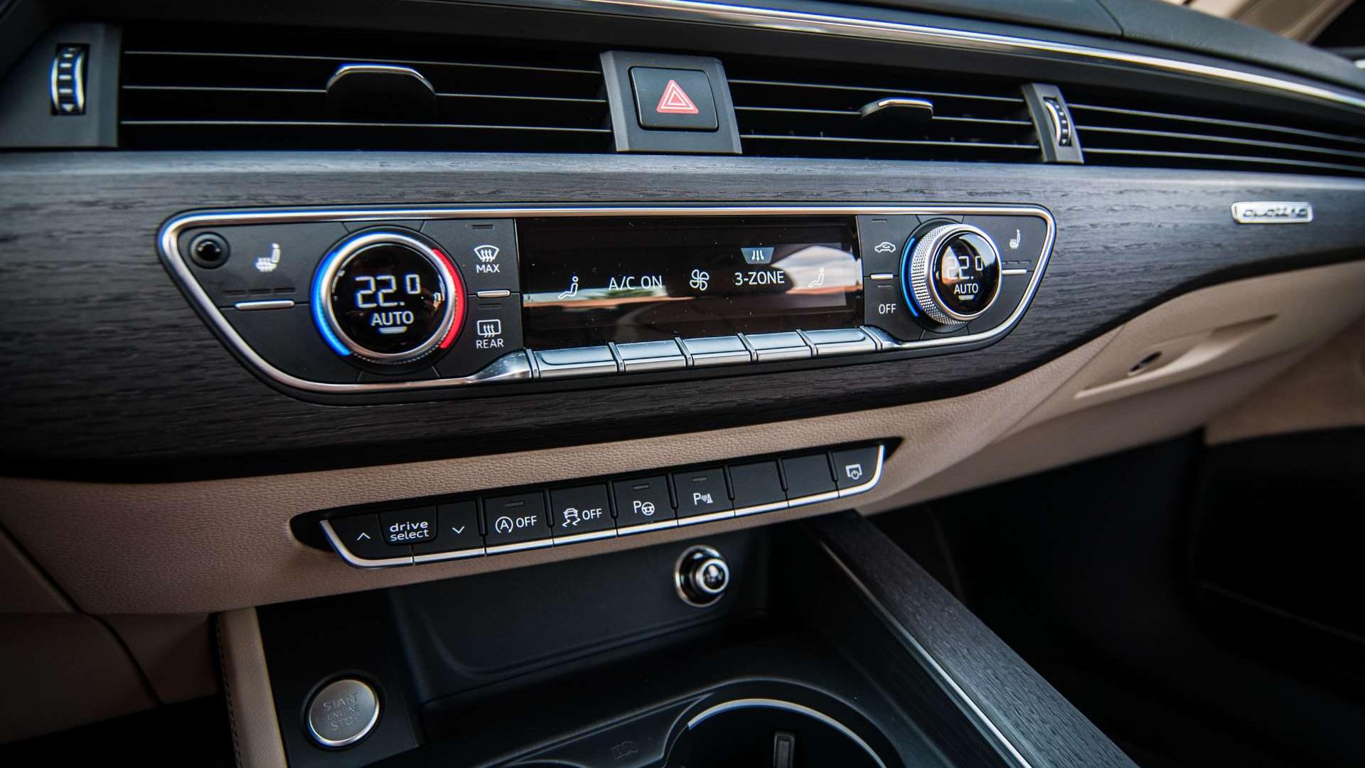 Nawiewy zostały zawarte w jednym pasie. Nadaje to wnętrzu harmonii, ale widzieliśmy to już przecież w Passacie B8. Niżej znajdziemy nowy układ sterowania 3-strefową klimatyzacją. W elemencie tym przejawia się dbałość Audi o szczegóły. Kiedy bowiem położymy na jednym z przycisków palec, na małym ekranie pojawia się lista opcji. Dalej ruszamy przyciskiem w górę lub w dół. Obylibyśmy się i bez tego, ale w ten sposób obsługa staje się jeszcze bardziej płynna. To coś, jak ekranowe przyciski w smartfonach. Niby mogłyby nie dawać żadnego potwierdzenia wciśnięcia, ale kiedy go brakuje, nie mamy pewności, że nasze polecenie zostało przetworzone - i obsługa staje się bardziej naturalna.