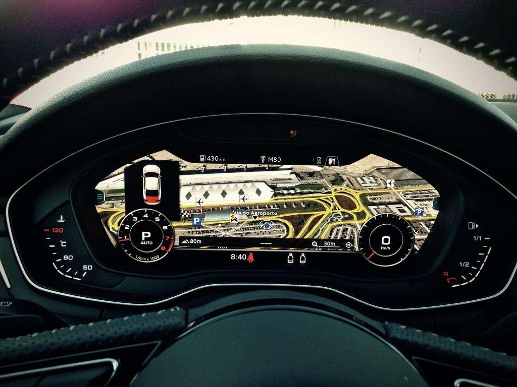 Oczywiście nie zabrakło też garści gadżetów. Audi A5 może być wyposażone w hologram wyświetlający na szybie informacje o jeździe, hotspot udostępniający internet smartfonom czy pasy bezpieczeństwa podawane przez elektryczny wysięgnik. Ponadto wybierak automatu wygląda jak rzeźba, a za kierownicą króluje potężny wyświetlacz, który wygląda jak ekran w kinie. Co potrafi ten ostatni? Całkiem sporo. Może symulować analogowe zegary lub prezentować informacje z systemu multimedialnego i nawigacji. To jedna z lepszych rzeczy w tym aucie, choć dla niektórych pewnie zbędna. Sam złapałem się na tym, że częściej zerkałem na centralny wyświetlacz, żeby podejrzeć wskazania nawigacji. To jednak kwestia przyzwyczajenia, bo dzięki dwóm dużym ekranom we wnętrzu pasażer może przeszukiwać zawartość swojego pendrive’a, a kierowca na bieżąco śledzić przebieg trasy w wyjątkowo czytelny sposób. Swoją drogą – nawigacja ma śliczną, trójwymiarową grafikę i jest dostarczana przez Google Maps. Monitoruje nawet korki na drodze, ale jak to Google – niestety wymaga stałego połączenia z internetem i momentami wolno działa. To oczywiście tylko niewielka część potężnego wyposażenia Audi A5, ale ważniejsza jest inna rzecz – ilość miejsca. Kierowca nie jest przytłoczony rozbudowanym kokpitem, a z tyłu, mimo 2 drzwi, wygodnie będzie nawet wyższym pasażerom. Wnętrze zyskało niecałe 2 cm długości, co przełożyło się na odrobinę większą ilość miejsca w okolicach głów, ramion i kolan. Z kolei bagażnik oferuje tym razem 465 litrów – przynajmniej „na papierze”. Czas jednak ruszyć w trasę.
