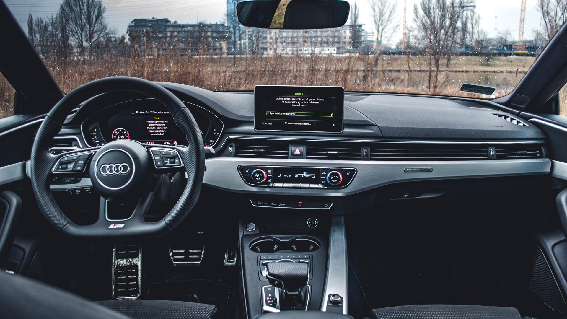 Choć wykończenie Audi zawsze stoi na bardzo wysokim poziomie, to jednak to, że ten samochód wygląda tak a nie inaczej w środku, jest zasługą pewnych opcji dodatkowych. Dolna część konsoli środkowej, podparcia i uchwyty w drzwiach pokryte są skórą ekologiczną, ale kosztuje to 1410 zł. Podobnie z podłokietnikiem. Owszem, jest w standardzie, ale jeśli ma się przesuwać, to musimy wyłożyć najpierw na stół dodatkowe 930 zł.