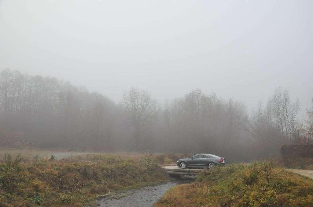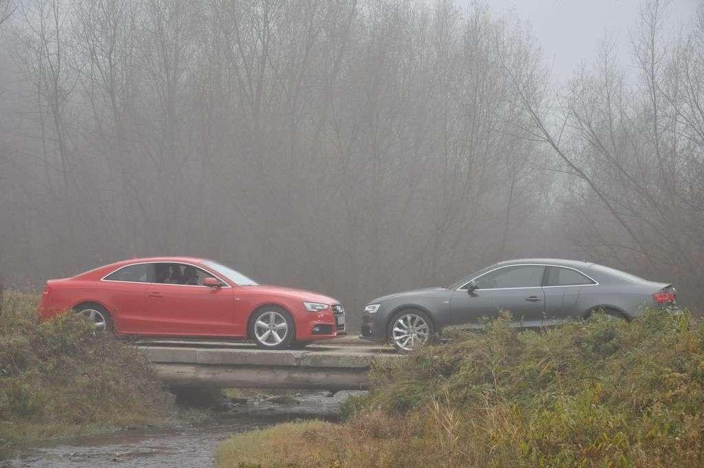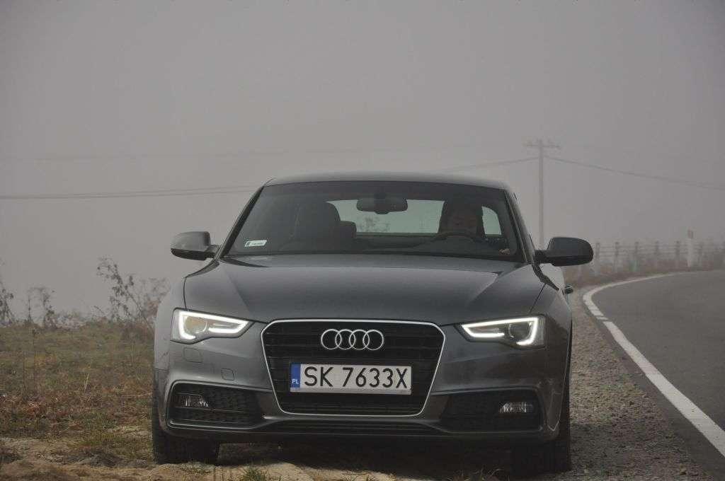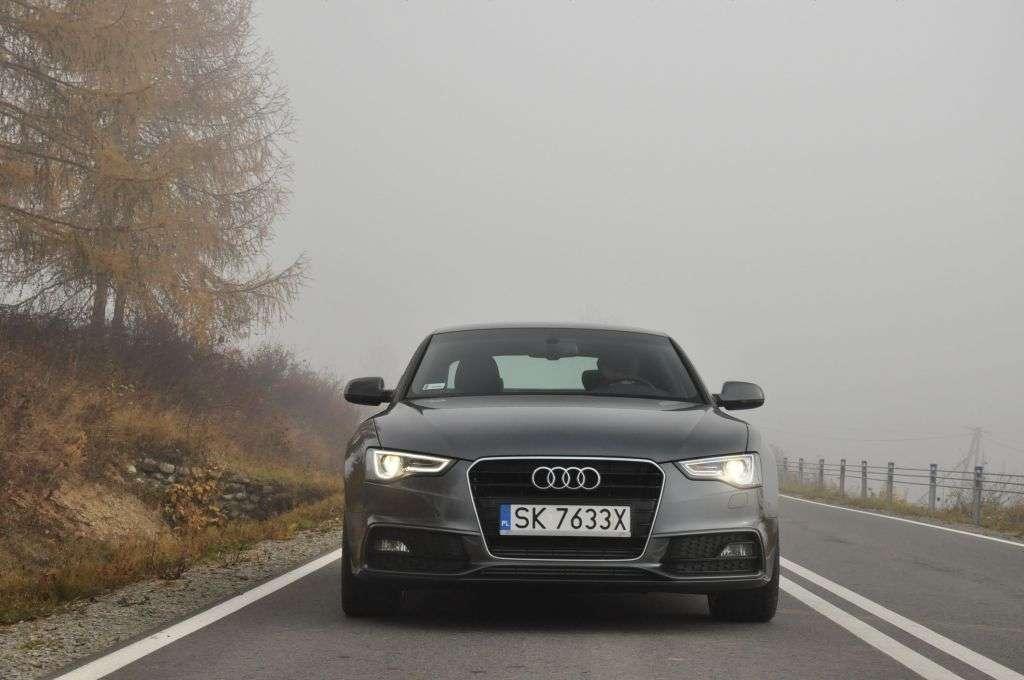 Do jazd testowych udostępniono nam kilka samochodów w wersji Coupe i Sportback z różnymi silnikami i wersjami wyposażenia. Po naciśnięciu kluczyka, który otrzymałem od organizatorów, zamigało do mnie auto z jedną parą drzwi, manualną skrzynią biegów i 177-konnym silnikiem 2.0 TDI. Po zajęciu miejsca okazało się, że na liście dodatkowego wyposażenia był także system Audi Drive Select, pozwalający na sterowanie charakterem pracy układu kierowniczego i silnika. Po ruszeniu z miejsca zaś wyszło, że auto jest wyposażone także w sportowe utwardzone zawieszenie, które nie oszczędzało pasażerów i nie rozpieszczało komfortem – czuć było każdą nierówność na drodze. Chciałem sprawdzić zalety takiego ustawienia zawieszenia, czyli dobre właściwości jezdne, lecz Pieniny, drogami których przebiegała 90-kilometrowa trasa testowa, spowite były gęstą mgłą, osiadającą na drodze niebezpieczną warstwą. Z uwagi na brak znaczka quattro na grillu próby sportowe musiałem przełożyć na inny termin.