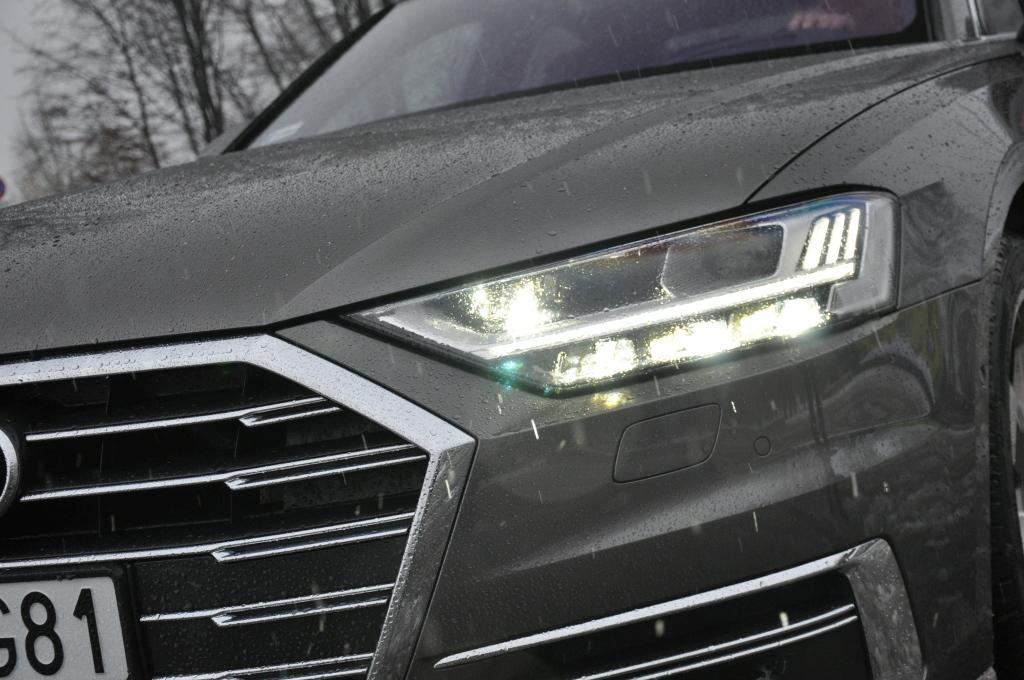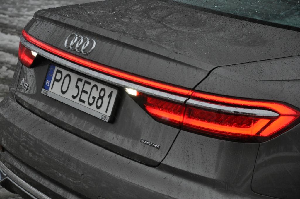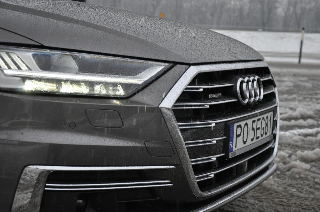 Patrząc na długie nadwozie, trudno nie odnieść wrażenia, że mamy do czynienia ze znanym widokiem. To celowy zabieg sprawiający, że wszystkie generacje największych limuzyn Audi, od V8 po najnowsze A8, mają podobną sylwetkę. Ale myli się ten, kto uważa, że nowej generacji nie będzie można odróżnić od poprzednich. To zasługa szerokiego grilla, wcinającego się pod reflektory z przodu i szerokiego pasa świateł tylnych. Za nowym wyglądem od razu idą rozwiązania techniczne, drogę przed autem mogą rozświetlać reflektory Matrix LED HD z diodami laserowymi, wyłączające partie drogi (w poziomie i w pionie), by nie oślepiać pojazdów z naprzeciwka. Tylne lampy mogą być wykonane w technologii diod organicznych OLED i witać oraz żegnać kierowcę animacjami świetlnymi.