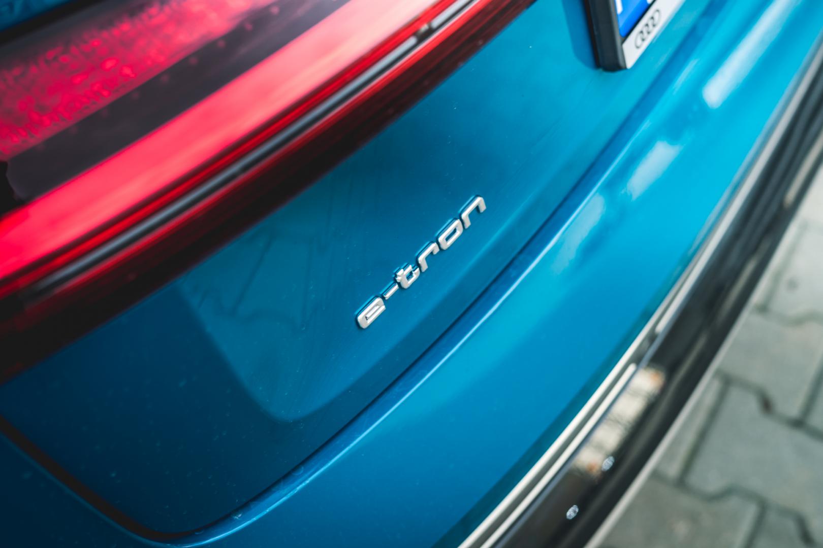 Po czym jeszcze poznać, że e-tron to… e-tron? Po otwieranej elektrycznie klapce, pod którą kryje się złącze ładowania – za 2260 zł możemy kupić taką samą klapkę po drugiej stronie pojazdu. Otwiera się elektrycznie i robi bardzo dobre wrażenie.