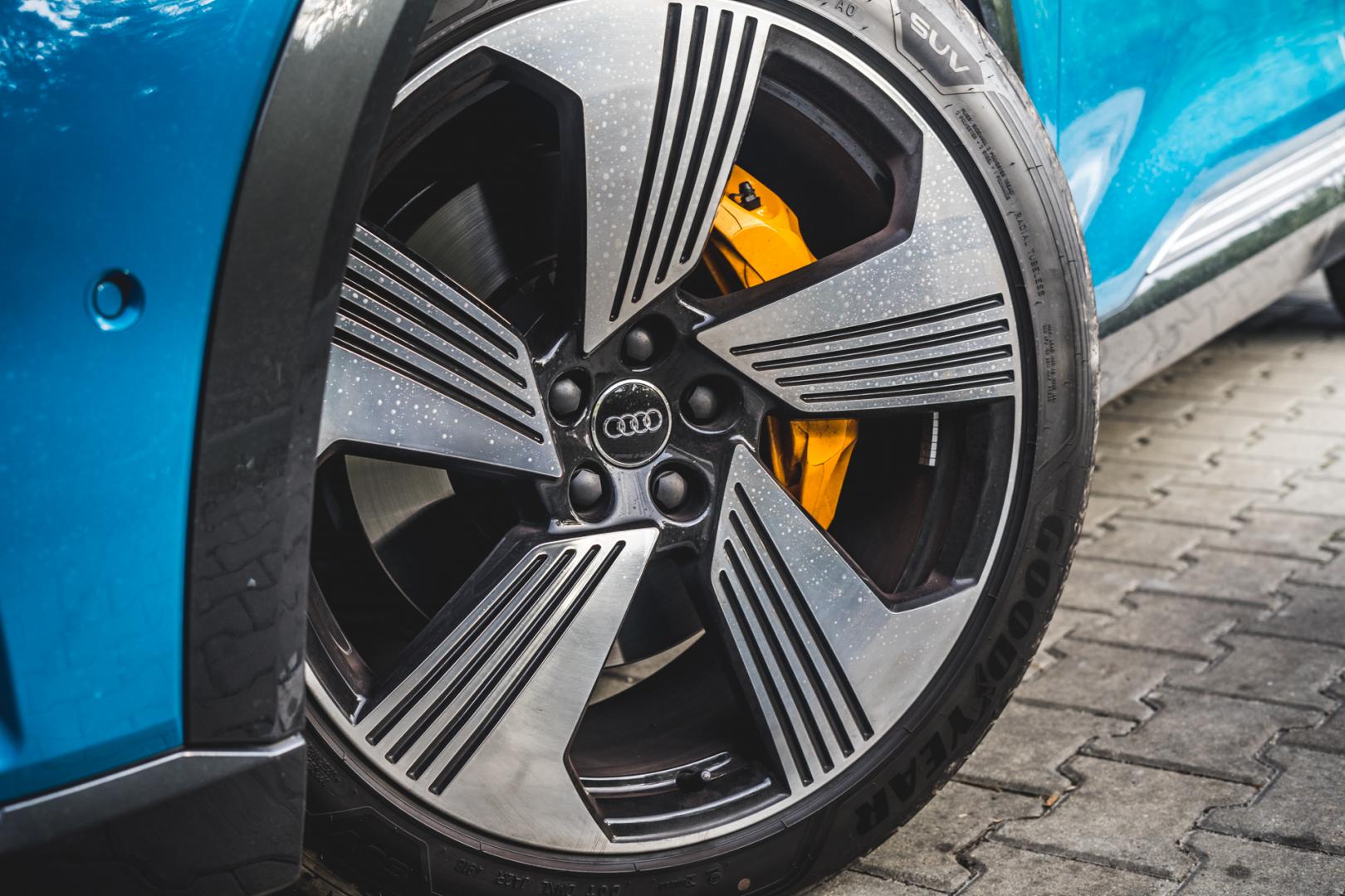 Chłodzenie odbywa się też tradycyjnie, za pomocą cieczy chłodzącej – w układzie krąży jej aż 22 litry. Jednak dzięki temu bateria ma być bardziej trwała i wydajna – i też dzięki temu może być ładowana prądem o mocy aż 150 kW. Z tak szybką ładowarką, e-tron ładuje się do 80% w zaledwie pół godziny.