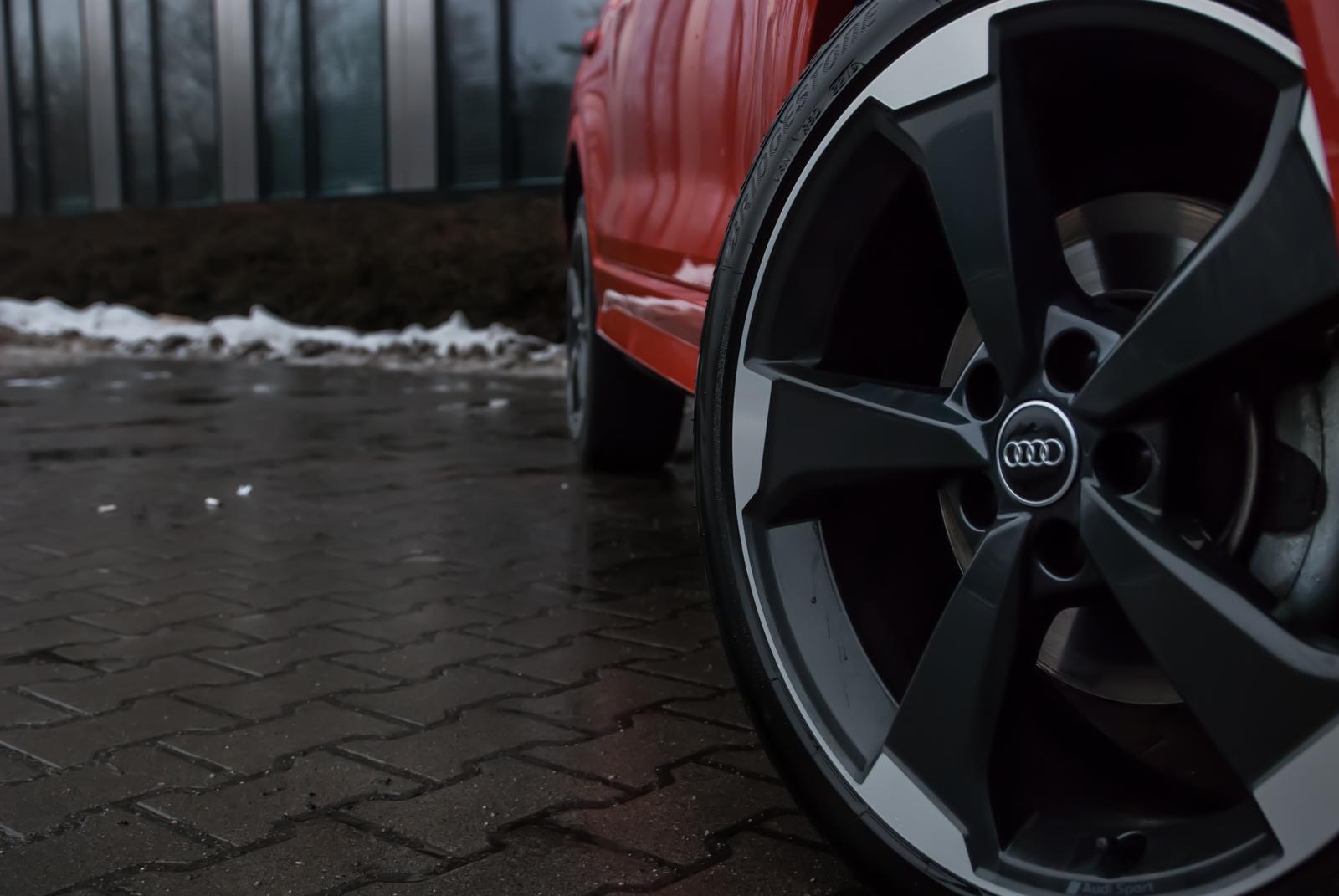 O ile Audi Q7 miałoby szanse przejechać przez nieco bardziej wymagający teren, to miejmy jasność – Q2 podda się walkowerem, gdy tylko straci kontakt z asfaltem. Mimo wszystko może się pochwalić nieco wyższym prześwitem, wynoszącym dla wersji podstawowej z silnikiem 1.4 TFSI dokładnie 145 mm. Niektóre źródła podają wartość aż 200 mm. Powodem tych rozbiezności jest fakt, że niektóre elementy wyposażenia (np. silnik, rodzaj napędu) wpływają na wysokość prześwitu. Wróćmy jednak do "naszej" Q-dwójki. Testowany przez nas egzemplarz nie mógł pochwalić się napędem na cztery koła. Nawet dołączanym. Do testów przypadła nam wersja z napędem jedynie na przednią oś. Małe nadwozie, waga piórkowa w postaci 1265 kilogramów i „cywilny” napęd, nie zachęcały do opuszczania bezpiecznej miejskiej przestrzeni. Szczególnie w połączeniu z 19-calowymi felgami, wykonanymi z aluminium, ubranymi w opony o rozmiarze 235/40. Nawet jazda po polskich drogach, które niejednokrotnie mają więcej łat niż dalmatyńczyk, nie należała do najbardziej komfortowych metod podróżowania, a co dopiero mówić o zapuszczaniu się w bezdroża. Mimo wszystko jazda crossoverem zimą faktycznie jest wygodna. Dzięki podwyższonemu nadwoziu nie musimy obawiać się przytarcia progiem o śnieg, zalegający na przykład na parkingach, które nie zawsze są odśnieżone. Teoretycznie w takim aucie też żaden krawężnik nam nie straszny. W przypadku testowanej Q-dwójki „kagańcem przyzwoitości” były jednak olbrzymie felgi.