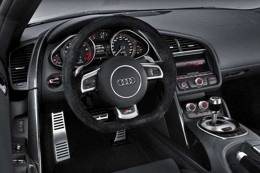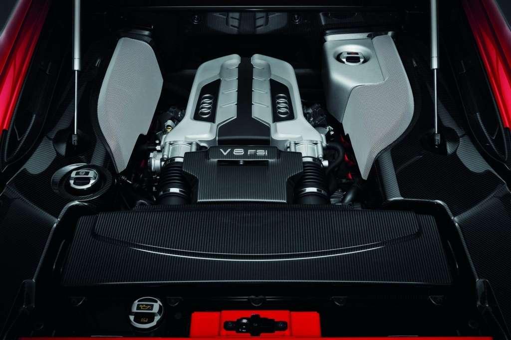No dobrze, zmiany zewnętrzne i wewnętrzne mamy za sobą, sprawdźmy więc, co zmieniło się pod maską. Z pozoru niewiele – serwis Carscoop donosi, że dotychczasowe bazowe jednostki napędowe, czyli 4,2-litrowa V8 o mocy 430 KM i 430 Nm, oraz 5,2-litrowa V10 o mocy 525 KM i 530 Nm pozostały praktycznie bez zmian. Jak już wspomnieliśmy, Audi zdecydowało się zamienić dotychczasową 6-biegową skrzynię R tronic na nową, 7-biegową przekładnię S tronic z podwójnym sprzęgłem. Zdaniem producenta, nowa skrzynia pozwala zredukować emisję CO2 o całe 22 g/km, co z pewnością mało kogo interesuje. O wiele ciekawszą zmianą jest skrócenie sprintu od 0 do 100 km/h o 0,3 do 0,5 sekundy. Dotychczas oferowana 6-biegowa skrzynia manualna pozostanie na liście wyposażenia. No dobrze, a teraz przejdźmy do szczegółów poszczególnych odmian silnikowych.