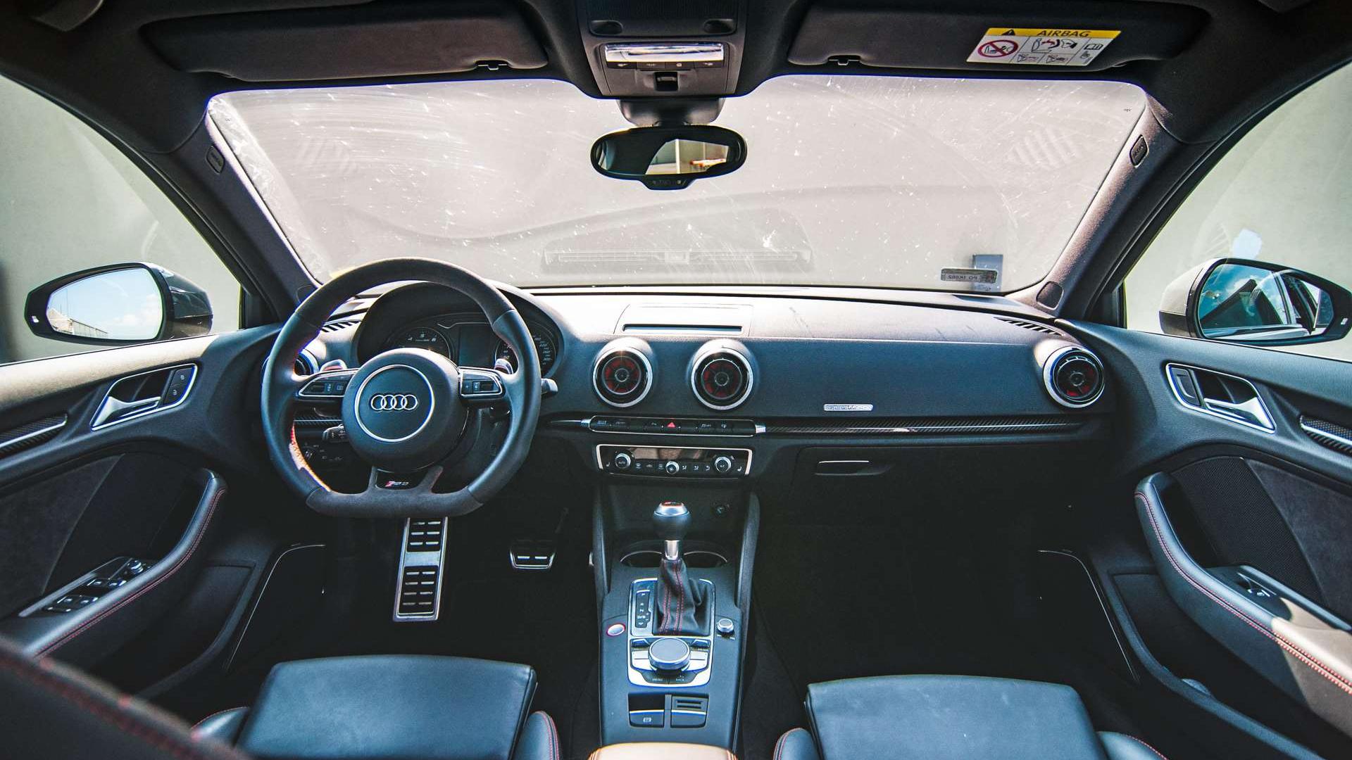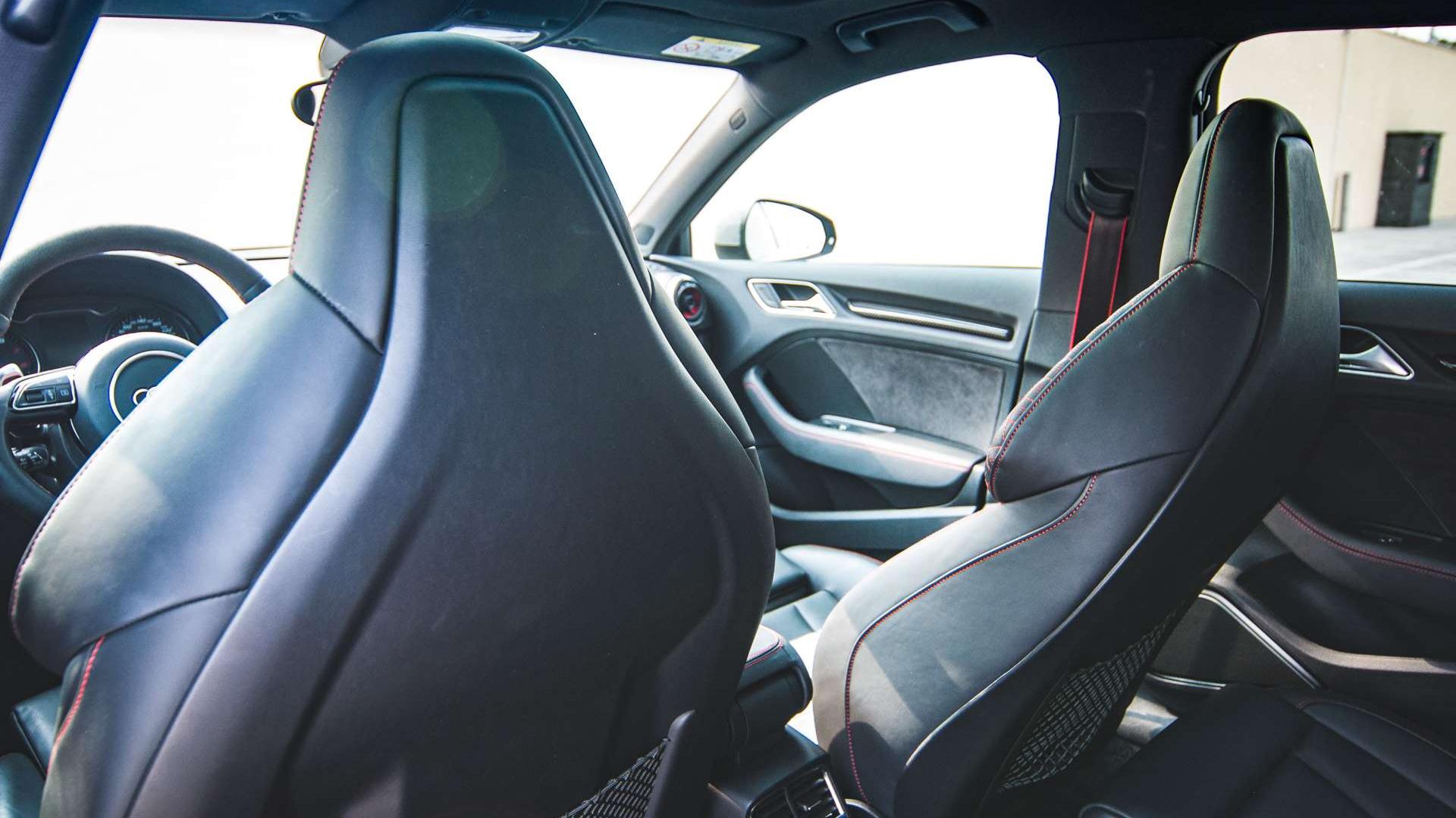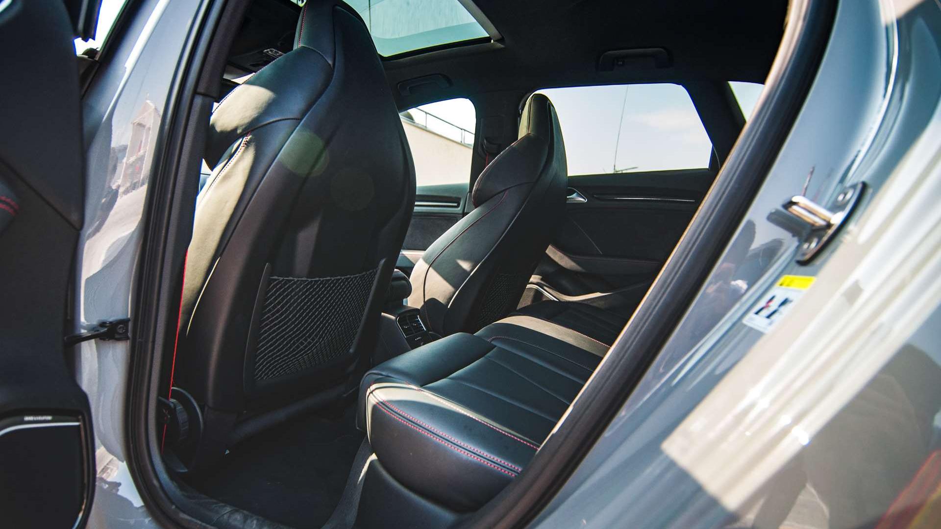 Hot hatche to z reguły topowe odmiany regularnych modeli. Mają najlepsze wyposażenie i ciekawsze detale we wnętrzu. W Audi RS3 pojęcie „top” przesunięto kawałek dalej. To kolejna kategoria, w której góruje nad resztą konkurencji. Wynika to jednak bezpośrednio z luksusowego charakteru marki, aniżeli z oferty przygotowanej specjalnie dla tej wersji. Już w S3 możemy bowiem zamówić fotele typu S (tutaj w standardzie), z materiałów z katalogu Audi exclusive. Za ponad 20 tysięcy złotych, dodajmy. Jeśli chcemy więcej sportu - do RS3 możemy zamówić fotele z konstrukcją z karbonu. W ten sposób oszczędzamy 7 kg.