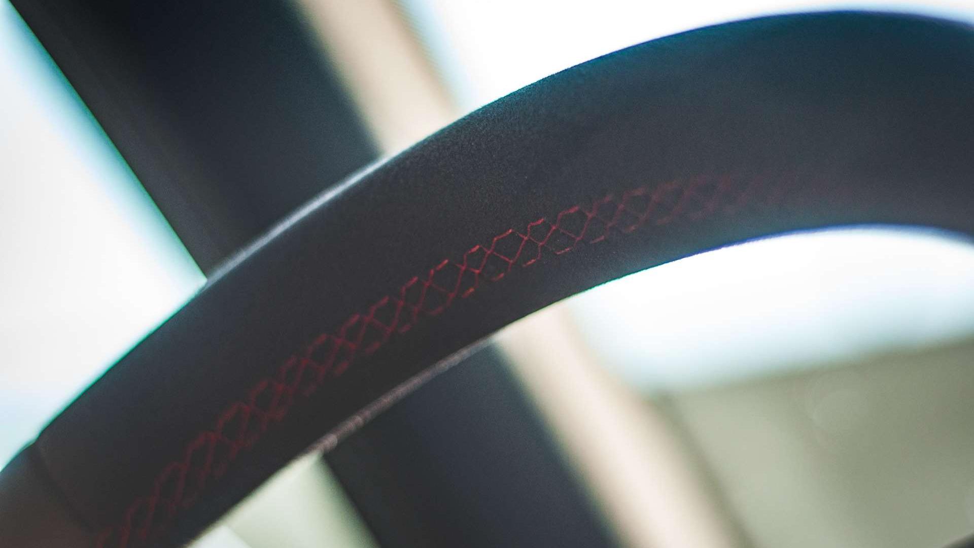 Sylwetka boczna jest równie ciekawa. Nad tylną szybą widzimy kolejny spoiler, ale uwagę przykuwają przede wszystkim 19-calowe felgi. Na zdjęciach widzicie opcjonalny wzór w kolorze antracytowej czerni za 3910 zł. Z tą opcją wiąże się jednak też inny rozmiar opon. Standardowe koła mają szerokość 235 mm i profil 35%, ale po wykupieniu opcji, na przód wędrują szersze opony - 255 mm z profilem 30%. Szersze „buty” z przodu mają zminimqliaować efekt podsterowności znany z poprzedniej generacji.