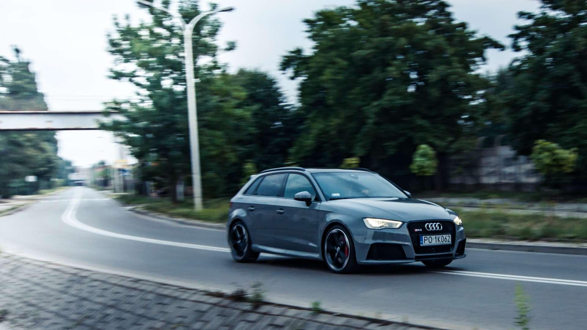 Wszystkie te sportowe dodatki w połączeniu z podstawowym szarym kolorem Nardo Grey prezentują się nadzwyczaj dyskretnie. Wystarczy jednak, że pieszy złapie minimalnie dłuższy kontakt wzrokowy i już wie, o co tutaj chodzi. Policjant też. Radary celują w Audi RS3 automatycznie.