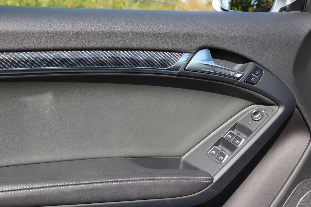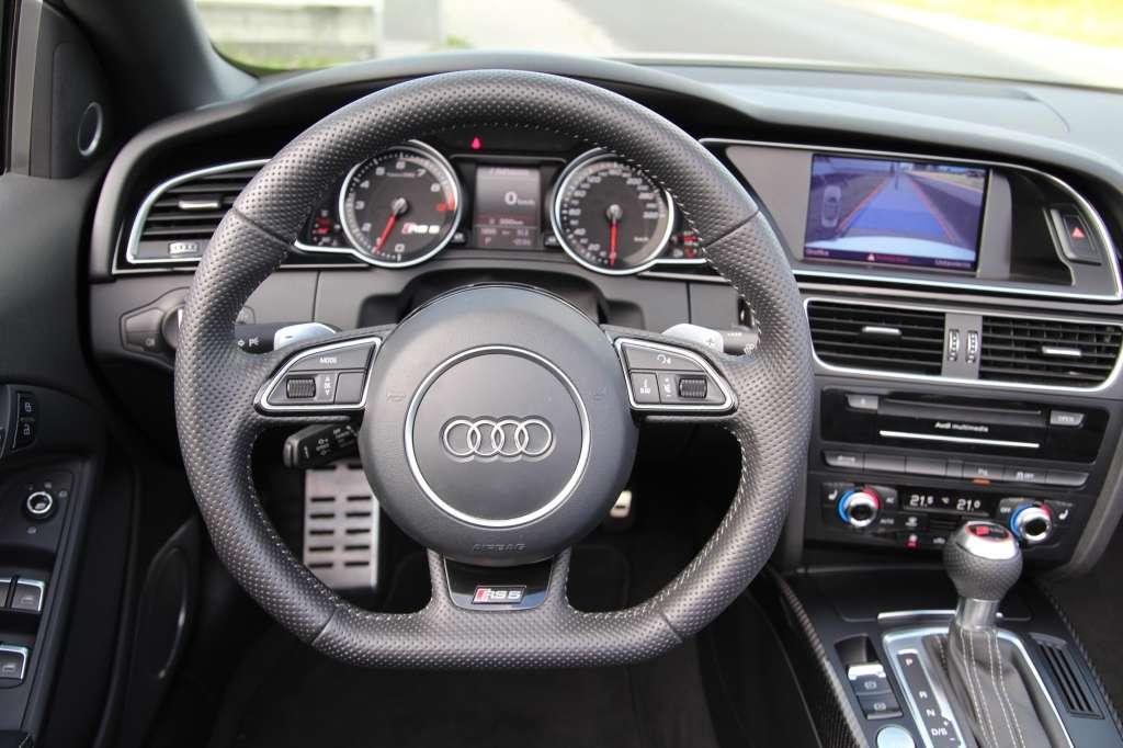 Wnętrze Audi RS5 jest perfekcyjnie wykończone. Jakości materiałów, precyzji montażu, kolorystyki, oporu stawianego przez przełączniki albo dźwięków wydawanych przez pokrętła nie skrytykują nawet najwięksi malkontenci. W najmocniejszej odmianie Audi A5 standardem są karbonowe ozdobniki na tunelu środkowym oraz boczkach drzwiowych. Można je bezpłatnie zamienić na listwy z aluminium, stali bądź dekory pokryte lakierem fortepianowym. Dopłaty nie wymaga również sportowa kierownica. Jeżeli komuś nie odpowiada wieniec ze spłaszczoną dolną częścią, może wybrać okrągłą kierownicę.