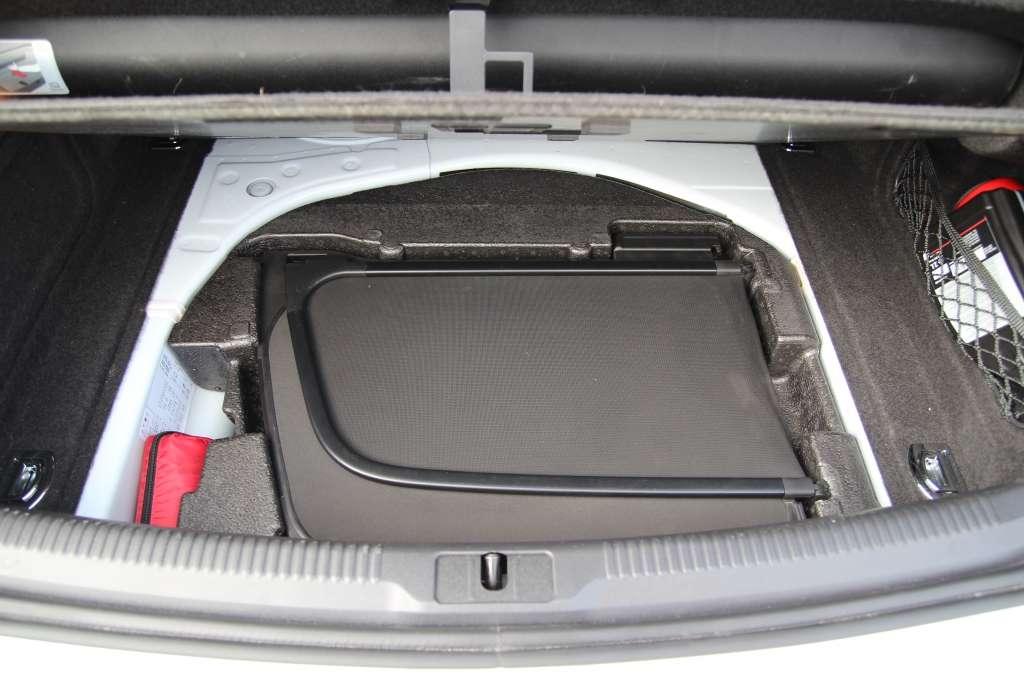 Przy otwartym dachu bagażnik mieści 320 litrów, czyli dwie duże walizki i kilka mniejszych toreb. Po zamknięciu dachu kufer rośnie do 380 l. W sytuacjach awaryjnych można złożyć oparcia tylnych foteli i cieszyć się... 750-litrową przestrzenią bagażową. Audi doskonale rozwiązało kwestię windshota. W wielu kabrioletach - gdy jest nieużywany - bezwładnie przemieszcza się po podłodze bagażnika. W RS5 wiatrołap można schować pod podłogą kufra. Wkładka z odpowiednio wyprofilowanego tworzywa zadba, by nawet podczas najbardziej dynamicznej jazdy pozostał na swoim miejscu.