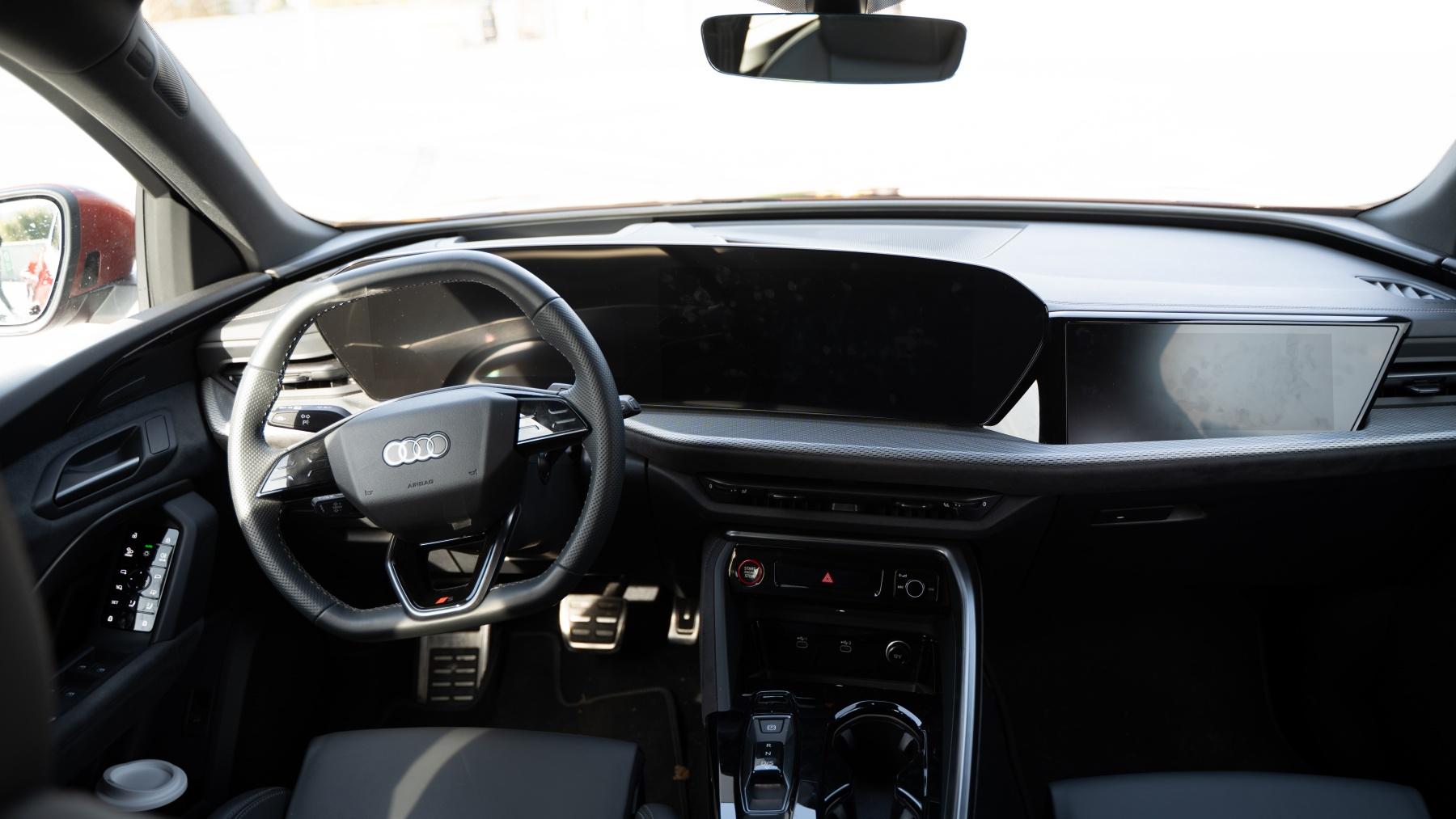 Jak przystało na Audi, cyfrowe zegary są intuicyjne w obsłudze, czytelne i działają płynnie, a ich możliwości konfiguracji są naprawdę spore, włącznie ze wskazaniami stricte sportowymi, m.in. informacją o przeciążeniach, wykorzystaniu mocy czy czasie przejazdu. Na początku nagromadzenie funkcji na kierownicy może przytłaczać, zwłaszcza, że przyciski mają postać dotykowych paneli z haptyczną informacją zwrotną, jednak okazuje się to lepszym rozwiązaniem od paneli pojemnościowych znanych z Mercedesa. Szkoda tylko, że asystent głosowy w Audi dość wyraźnie odstaje działaniem od tego w Mercedesie. Pewien zgrzyt miałem także, gdy spojrzałem na przeładowany funkcjami panel na drzwiach kierowcy, z którego sterujemy światłami, lusterkami, szybami oraz pamięcią ustawień fotela kierowcy - trochę za dużo tego, co nie.