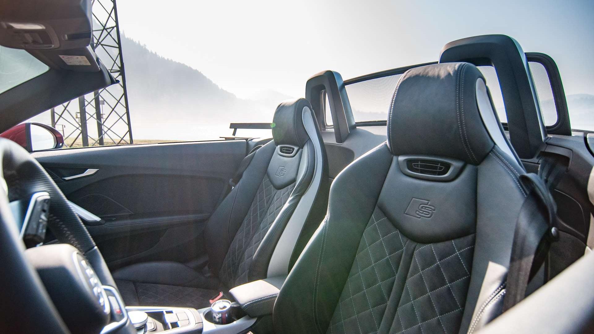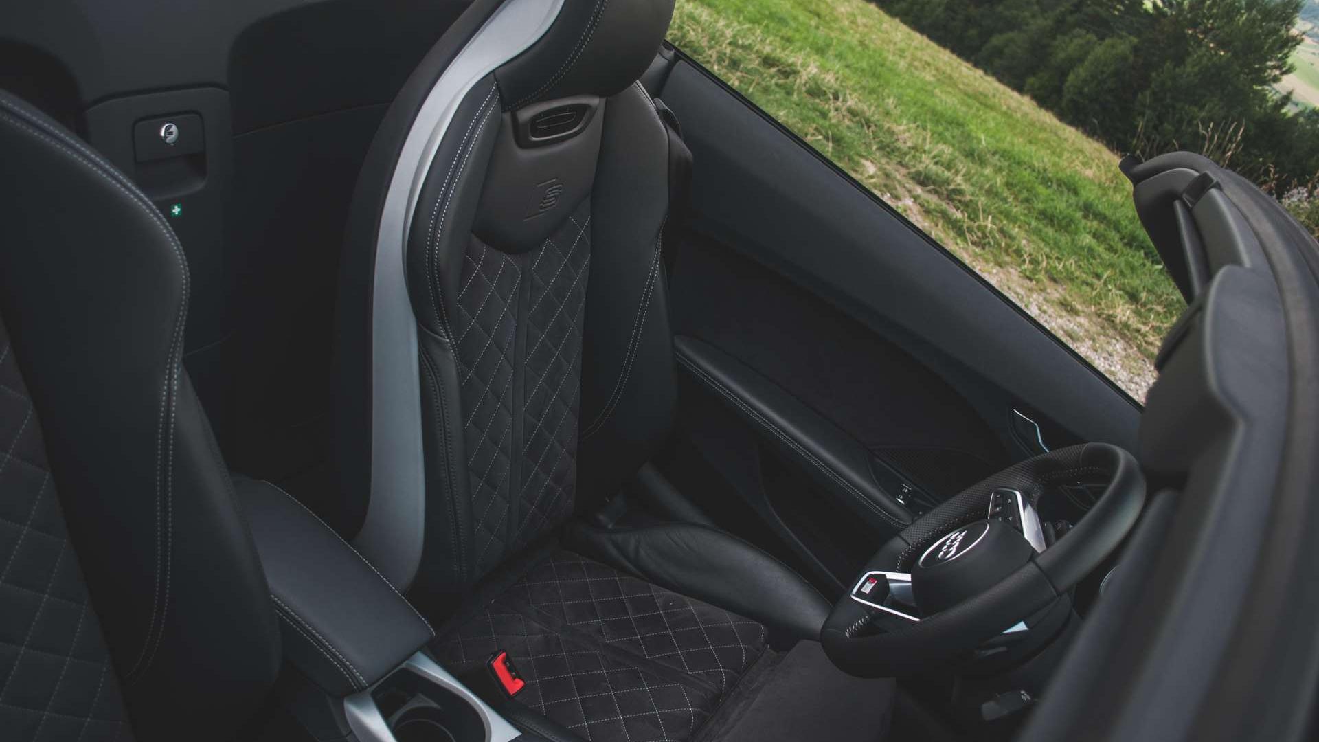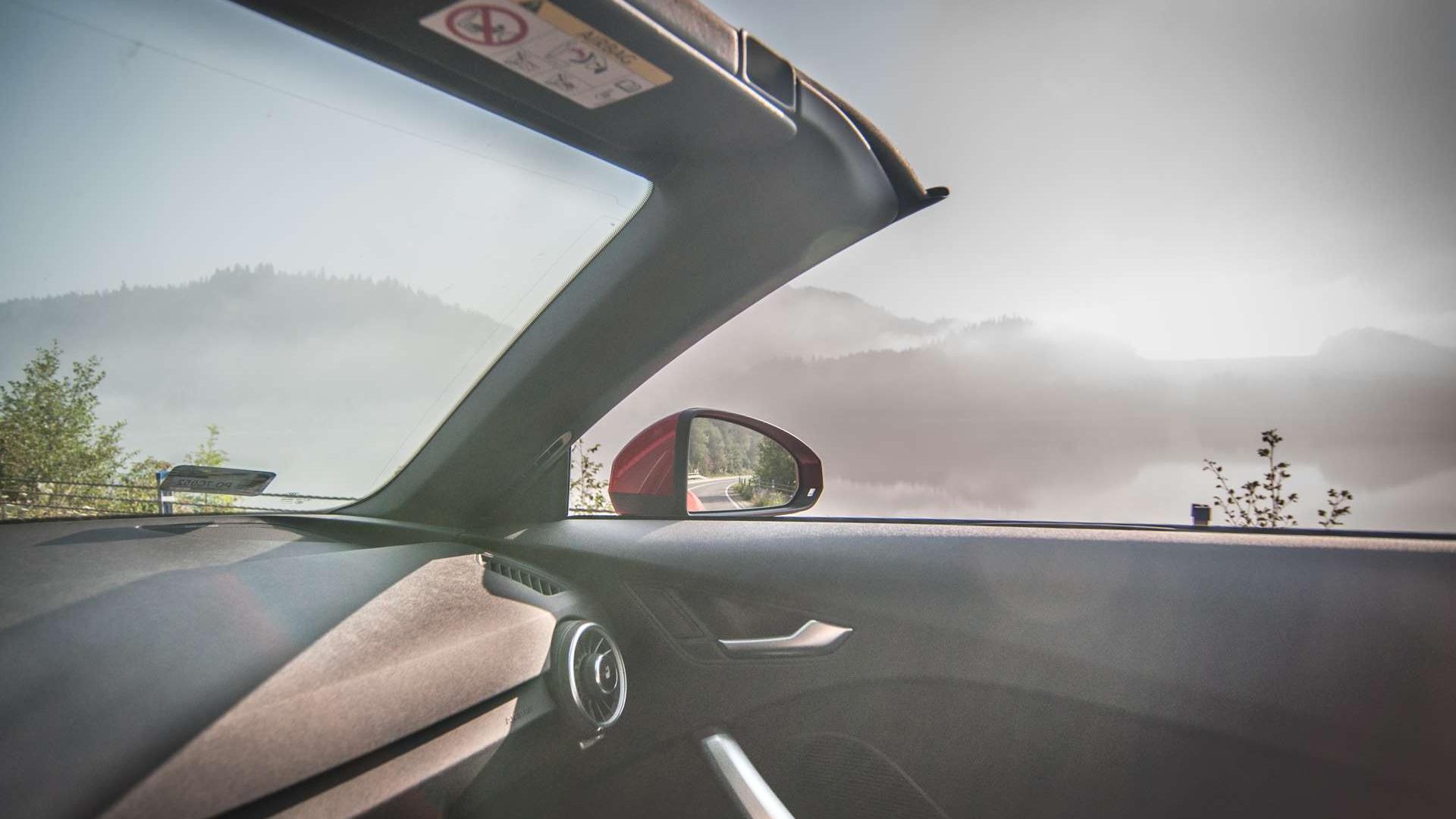 Jakie są elementy tej zabawy? Przede wszystkim dźwięk silnika. Choć pod maską znajdziemy 230-konne TFSI o pojemności dwóch litrów, układ wydechowy nie pozwala kręcić nosem, że „to tylko dwa litry”. Tym bardziej, że jest to dźwięk naturalny - przecież od końcówek układu dzieli nas zaledwie fragment karoserii i materiałowy dach. Bez niego jest jeszcze lepiej. Włączasz tryb Dynamic, wciskasz gaz do oporu i cieszysz się jak dziecko, kiedy słyszysz kolejne strzały z rur odbijające się echem po wijącej się górskiej drodze.