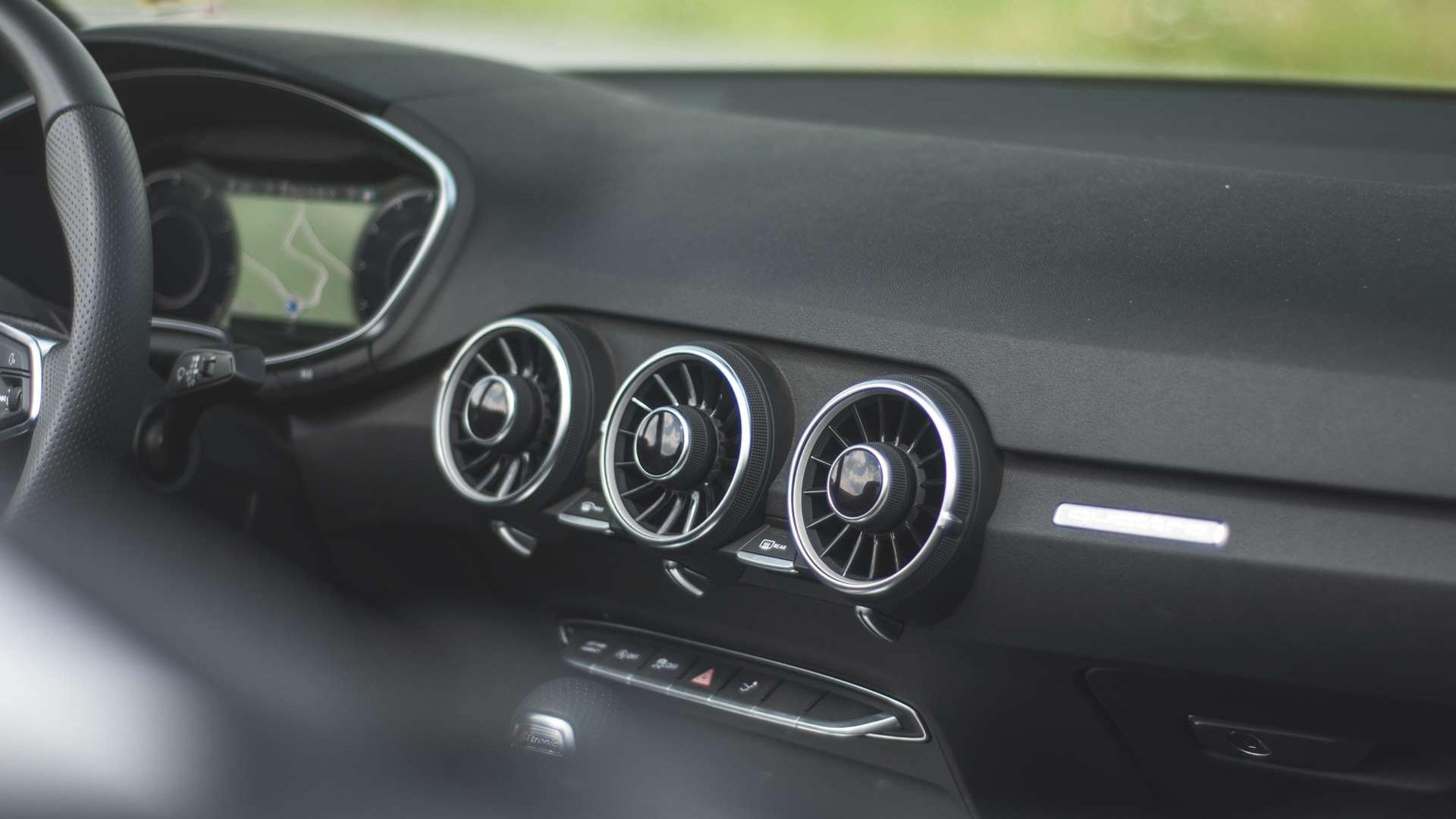 Projekt deski rozdzielczej jest nieco futurystyczny. Wymaga od nas chwili przyzwyczajenia, ale po niej następuje faza oczarowania. Przestrzeń została genialnie wykorzystana, ograniczając do minimum liczbę zbędnych przycisków i ekranów. Praktycznie wszystkie funkcje zarządzania klimatem zostały przeniesione na przyciski-pokrętła osadzone w nawiewach. Najbliżej drzwi uruchomimy podgrzewanie foteli i powiew ciepłego powietrza na kark, na środku z kolei ustalamy temperaturę, włączamy klimatyzację i wybieramy siłę nawiewu. Poniżej, na centralnej części konsoli, znajdziemy przyciski dotyczące jazdy - drive select, wyłącznik systemu Start/Stop, wyłącznik kontroli trakcji, światła awaryjne i… wysuwanie spoilera.