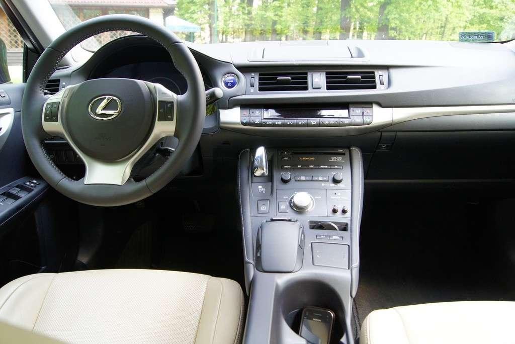 Zasiadamy za kierownicą, naciskamy przycisk uruchomienia silnika i ... zaskoczenie - silnik nie pracuje. W rzeczywistości układ sterowania uaktywnił już silnik elektryczny (stąd brak odgłosu pracy) i po włączeniu biegu i dodaniu gazu pojazd energicznie rusza z miejsca. Tu zarysowuje się pierwsza przewaga hybrydy. Silnik elektryczny ma on moment obrotowy 207 Nm od 0 obr/min. Tym samym podczas gdy każda jednostka spalinowa, aby ruszyć z miejsca musi posiadać wyższe obroty (stąd głośniejsza praca silnika), w CT 200 już po starcie mamy wysoki moment obrotowy pozwalający na pokonanie oporów toczenia, czy wzniesienia. Interesująca jest także sama dźwignia zmiany biegów. Nie jest ona, jak w klasycznym automacie, ustawiana w następujących po sobie pozycjach. To mały joystick którym wskazujemy na kierunek jazdy (przód D, lub tył R).