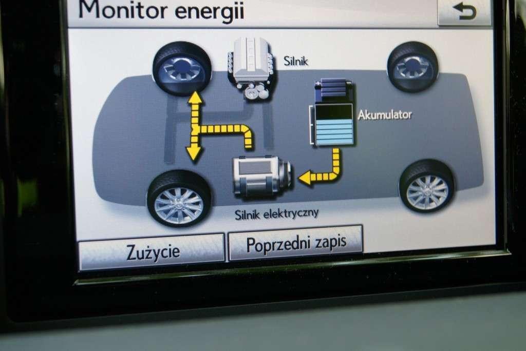 Po zwiększeniu prędkości automatycznie załącza się silnik spalinowy (jednostka ma 1798 ccm, moc 99 KM i moment 142 Nm) i pojazd jedzie jak klasyczny model benzynowy. Gdy gwałtownie dodamy gazu, wówczas pracę silnika benzynowego wspomaga jednostka elektryczna. Ta współpraca obydwu jednostek napędowych jest możliwa dzięki zastosowaniu przekładni planetarnej i elektronicznego układu nadzorującego przepływ momentu napędowego z kół sprzęgniętych z silnikiem spalinowym i kół połączonych z silnikiem elektrycznym. To połączenie przekazania napędu jest tak dopracowane, że podczas normalnej eksploatacji kierowca nie wyczuje jaki napęd jest w danej chwili załączony. Informują o tym jedynie wskazania na centralnym wyświetlaczu. Dzięki tym obrazom możemy dowiedzieć się, że prąd pobierany jest z akumulatora i poprzez silnik elektryczny napędzane są koła, silnik spalinowy napędza koła lub dodatkowo (oprócz kół jezdnych) napędza również silnik elektryczny, działający jak prądnica ładująca akumulator. Także gdy ściągniemy nogę z gazu układ napędowy jest aktywny, gdyż koła napędzając silnik elektryczny generują prąd magazynowany w akumulatorze. W korku silnik spalinowy automatycznie się wyłącza.