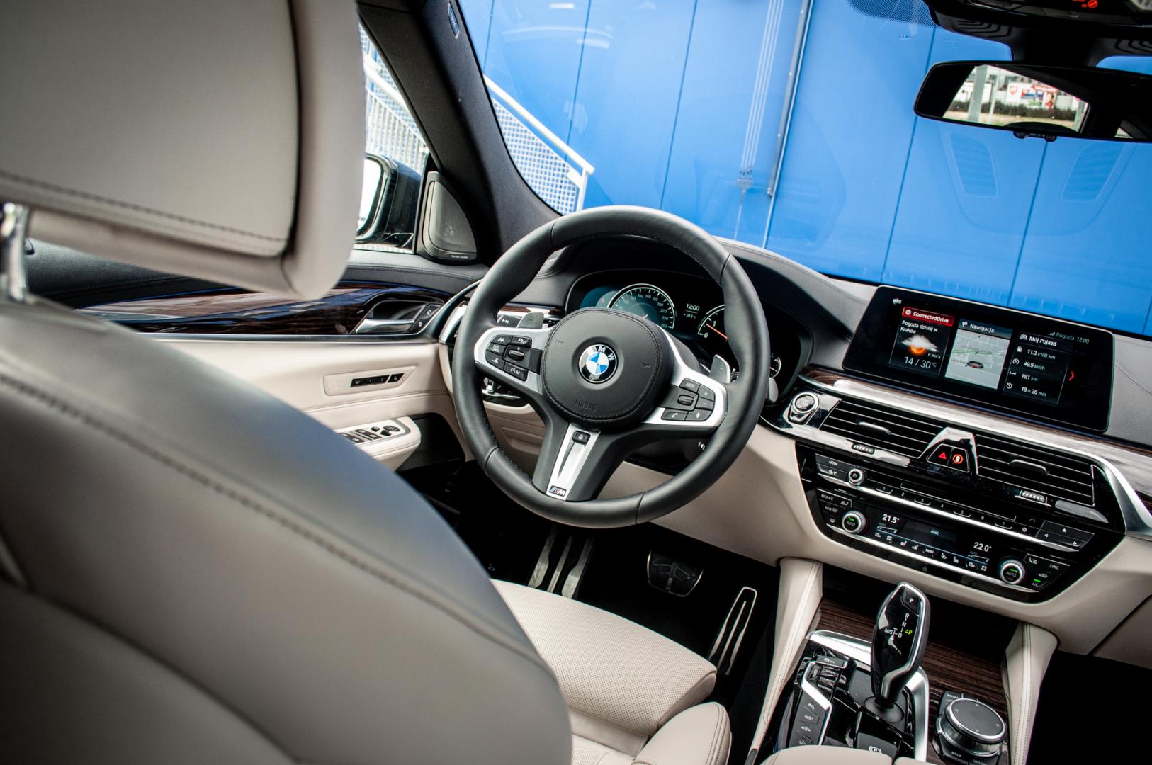Podobnie, jak w serii 5, mamy tutaj najnowszą generację iDrive z łącznością z Internetem. Nie ma tu CarPlay, ale BMW korzysta z własnego protokołu łączenia ze smartfonem - mamy więc na przykład pełny dostęp do Spotify czy Audible z poziomu systemu samochodu. Działa także przez Bluetooth.