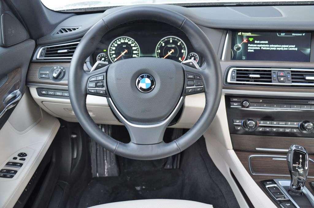 Zanim ruszę, rozglądam się po wnętrzu. Nie można powiedzieć, że jestem zaskoczony, bo geny BMW zobowiązują do określonego porządku. Wszystko jest rozpoznawalne, najwyższej jakości i we właściwym miejscu, ale różnica pomiędzy tym autem a pozostałymi modelami BMW polega na tym, że aby pomacać listwę na konsoli środkowej i upewnić się, że mamy tu do czynienia z prawdziwym drewnem, trzeba wstać i zrobić trzy kroki. Kabina jest tak obszerna, że czuje się niemal jak w sali kinowej, a spoglądając do tyłu widzę, że dostałem w tym kinie fotel za blisko ekranu, bo za mną jest mnóstwo wolnych miejsc.