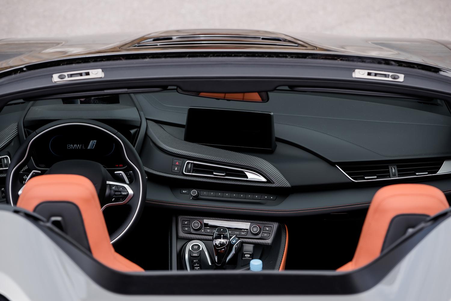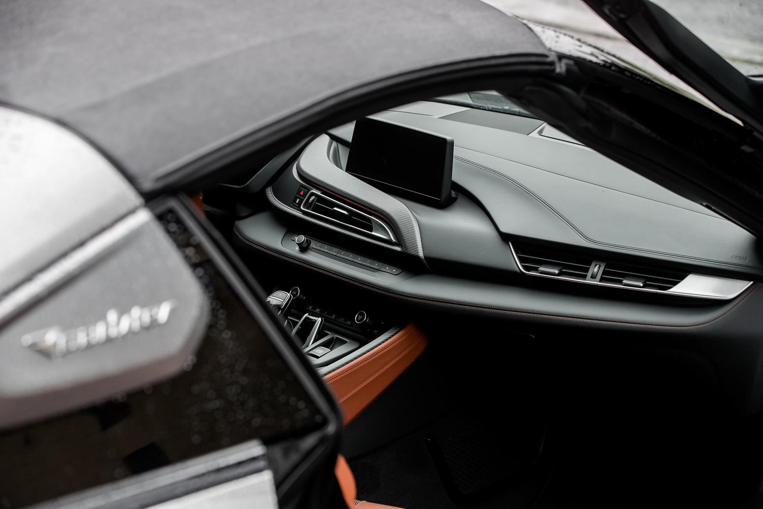 Wadą mogą być pewne braki w wyposażeniu. W testowanym egzemplarzu nie było wentylowanych siedzeń – tego braku raczej nie trzeba wyjaśniać. Nie było aktywnego tempomatu, który w zakorkowanym mieście mógłby jeszcze podbić komfort z eksploatacji, a nagłośnienie, które ostatecznie przetestowałem, ustępuje zestawowi Harman/Kardon w BMW serii 1. I oczywiście, te „braki” są względne. Jeśli model i8 Roadster potraktujemy – zgodnie z narracją BMW – jako „purystyczny kabriolet”, to nie zabraknie nam niczego. Ale jeśli sklasyfikujemy go jako ekskluzywną fanaberię, to wówczas lista „braków” może znacznie się wydłużyć. Wszystko zależy od interpretacji.