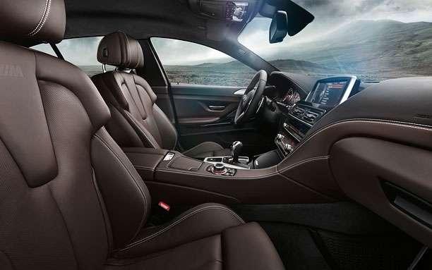 Wnętrze BMW M6 Gran Coupe jest przepełnione luksusem i drogimi materiałami. Skórą obszyto praktycznie wszystko, co nie jest litym metalem albo włóknem szklanym. Dodatkowo możemy zamówić specjalną tapicerkę ze skóry Merino, która charakteryzuje się niebywałą miękkością i wyglądem. Tradycyjnie już dla BMW konsola środkowa skierowana jest ku kierowcy, pokazując, kto tak naprawdę jest ważny w samochodzie i kto ma władzę. Pakiet M obejmuje również specjalny wzór kierownicy. Ciekawą opcją jest możliwość wyboru pomiędzy tylną kanapą dwu- lub trzy-miejscową. Do innych elementów wyposażenia opcjonalnego należą m.in. 4-strefowa klimatyzacja z oddzielnym panelem dla pasażerów znajdujących się na tylnej kanapie, podgrzewane koło kierownicy, system automatycznego zamykania drzwi, wielofunkcyjne, podgrzewane i wentylowane tylne fotele, najnowsza generacja systemu nawigacyjno–multimedialnego BMW Professional i niesamowity system nagłośnienia, renomowanej duńskiej firmy Bang & Olufsen High End Surround Sound System.