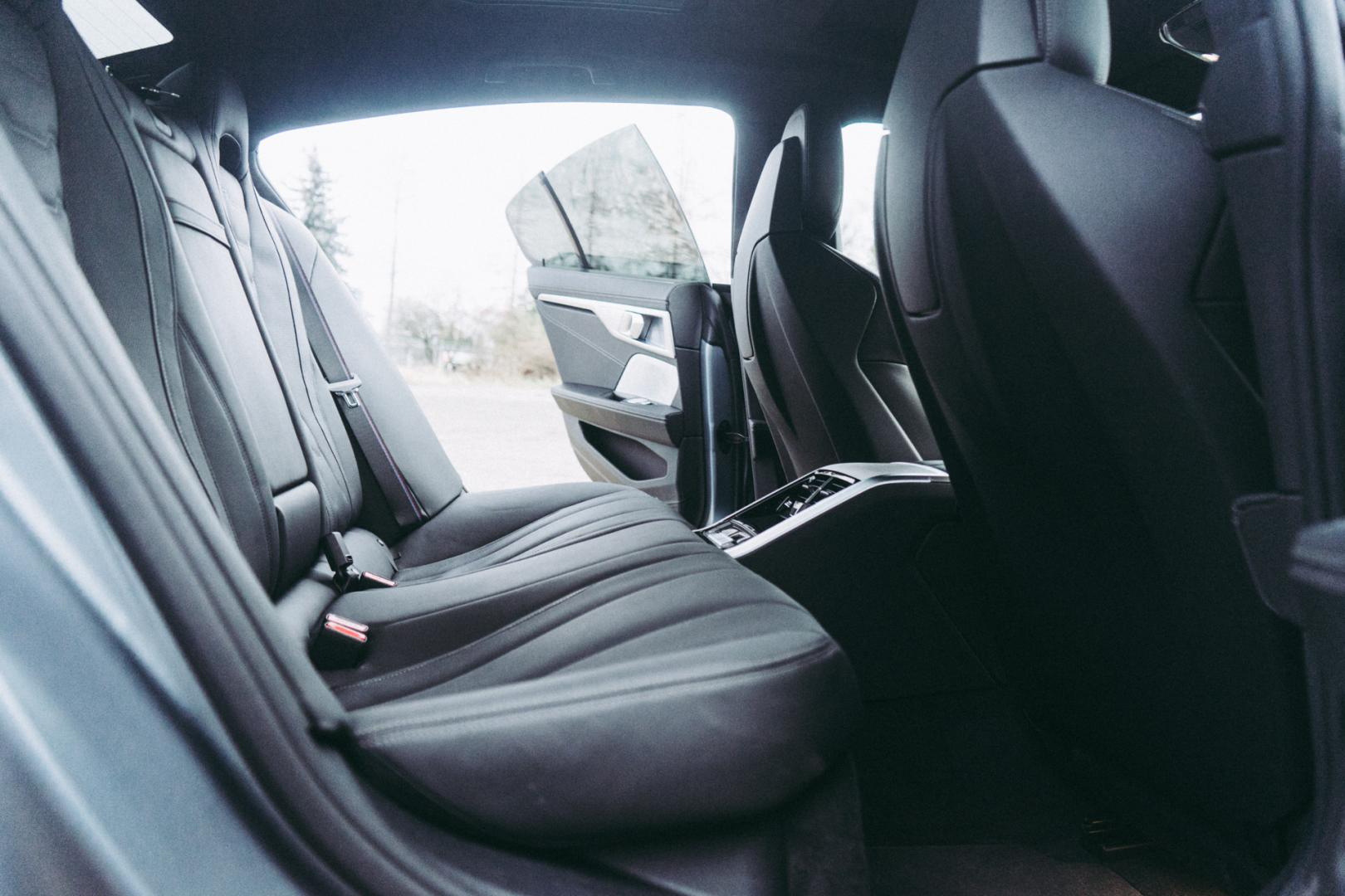 Ilość miejsca z tyłu jest godna tak dużej limuzyny, ale niski dach daje się jednak we znaki wyższym osobom. Zagłówki na tylnych fotelach BMW M850i Gran Coupe nie są regulowane i znowu wyższe osoby mogą się tu czuć pokrzywdzone.