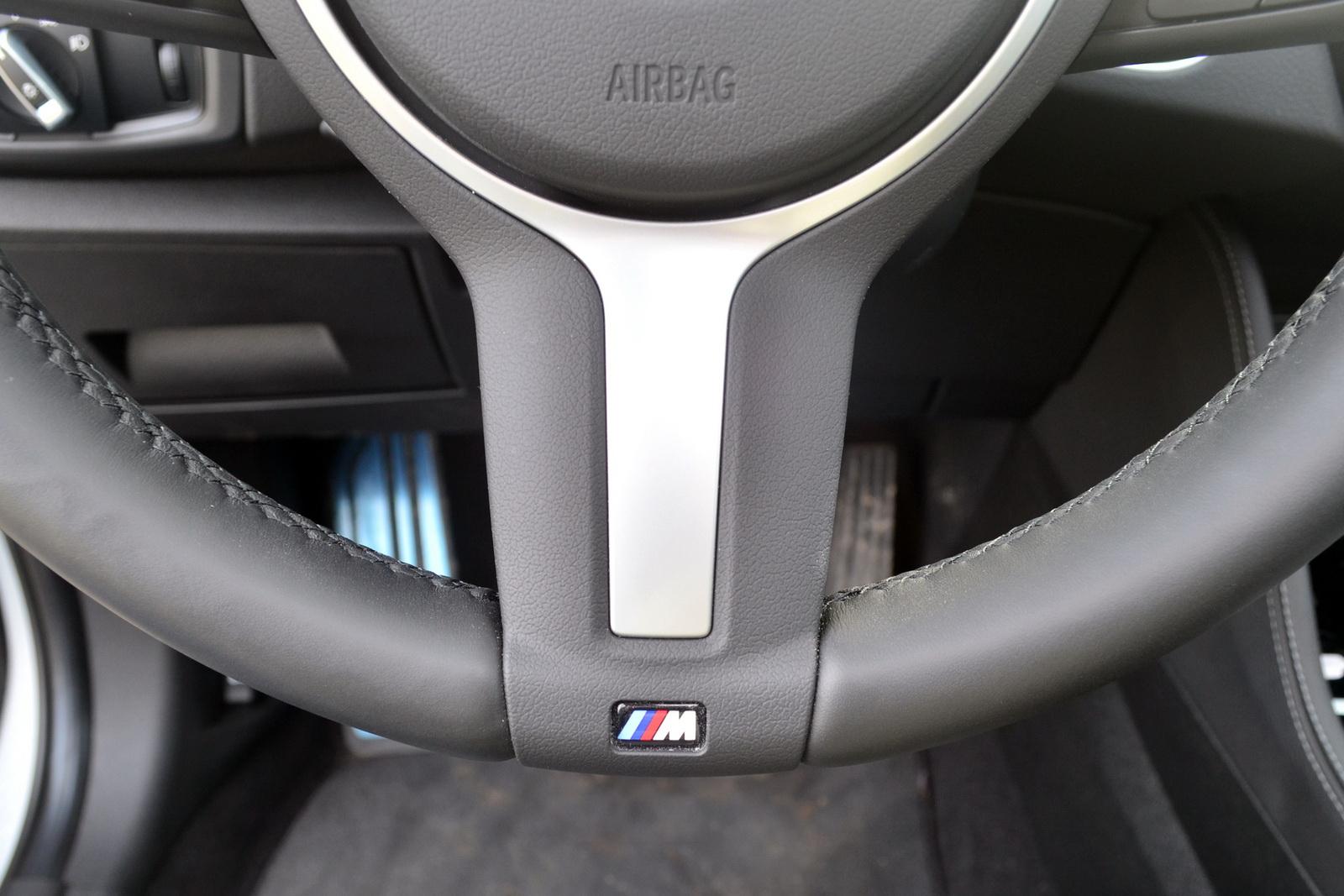 Wersja wyposażenia – „Model M Sport” to zestaw dodatków, który podobnie jak „pakiet AMG”, czy „linia S-line” nie ma nic wspólnego prawdziwymi ostrymi wersjami. To znaczki M-Power na błotnikach, listwach progowych, inaczej wyprofilowane fotele i inna kierownica. Ta ostatnia jest zdecydowanie największą zaletą całego zestawu. Ma gruby, doskonale leżący w dłoniach wieniec i trzy wąskie ramiona z metalowymi wstawkami. Pokryta jest przyjemną w dotyku, delikatną skórą. Całość wygląda nieco retro i takie też daje odczucie. Wspomaganie jest co prawda elektryczne, ale dzięki funkcji adaptacyjnego regulowania siły, daje złudzenie układu hydraulicznego, co sprawia, że kierowca dostaje dokładne informacje o tym, co dzieje się z przednimi kołami. Cały układ kierowniczy jest przy tym bardzo czuły i precyzyjny.