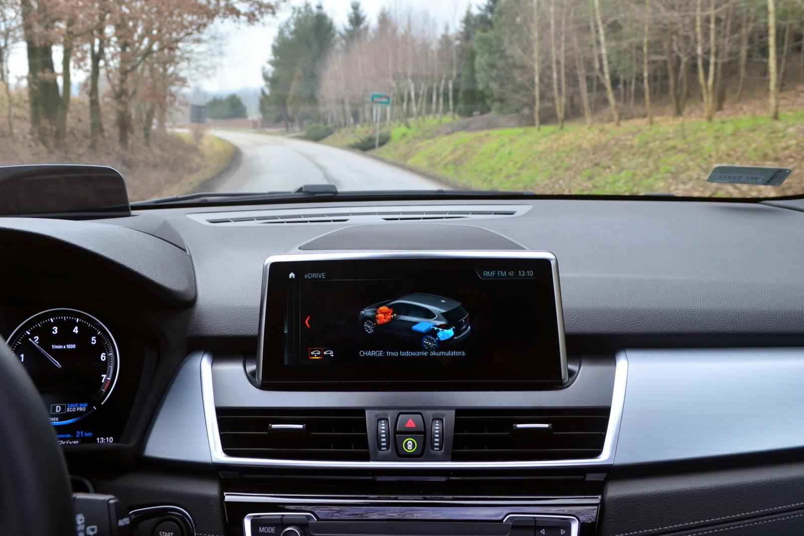 Po naładowaniu akumulatorów do wyboru mamy kilka trybów pracy samochodu. Możemy włączyć opcję „SAVE” i oszczędzać prąd, jadąc prawie wyłącznie na silniku spalinowym. Możemy wybrać tryb automatyczny, w którym to komputer zdecyduje, którego silnika używać w danej sytuacji, możemy również uruchomić tryb elektryczny – „MAXeDRIVE”. W tym momencie BMW 225xe staje się autem tylnonapędowym. To, plus możliwość dezaktywacji kontroli trakcji, sprawia, że „dwójka” Active Tourer potrafi na śliskiej nawierzchni toru doskonalenia techniki jazdy wykręcić bączka lub pójść bokiem niczym stare E36 z zaspawanym dyferencjałem – to jest „Radość z Jazdy” w najczystszej postaci! I to na prąd!
