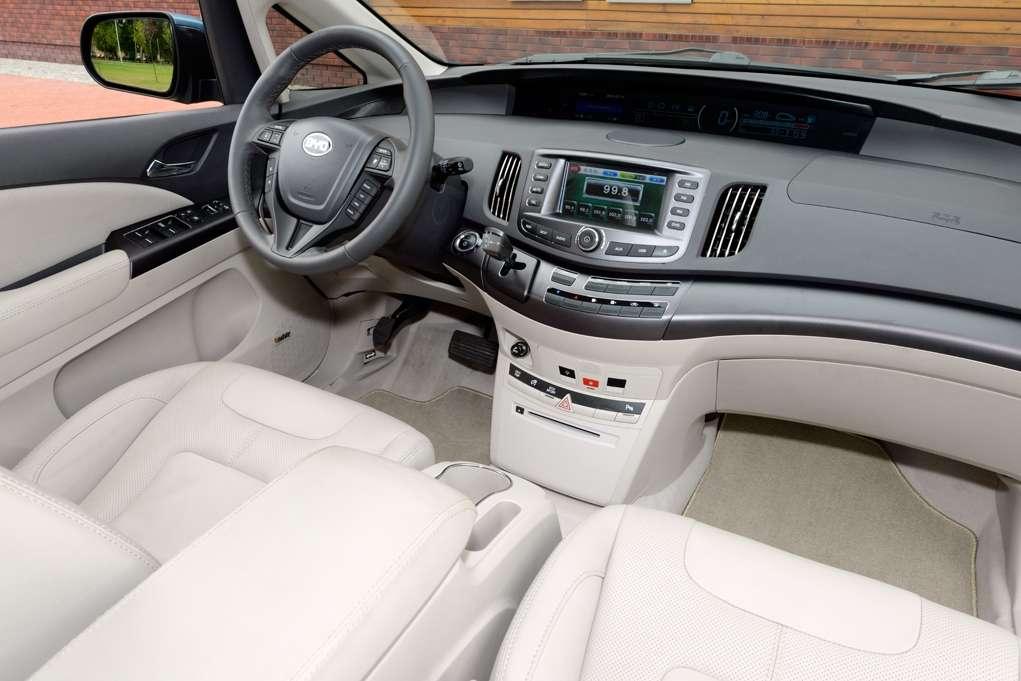 BYD e6 jest dużym, bo mierzącym 4560mm długości, 1822mm szerokości i 1630mm wysokości autem typu… Właśnie jakiego typu? E6 to połączenie SUVa z mini vanem, czyli crossover. Z zewnątrz auto nie wygląda specjalnie atrakcyjnie, ale nie od dziś wiadomo, że europejski gust motoryzacyjny jest inny niż u Azjatów. Dzięki rozstawowi osi na poziomie 2830mm, w środku znajdziemy mnóstwo miejsca. Natomiast przestrzeń bagażowa nie jest już tak obszerna – jedynie 385 litrów w tak dużym samochodzie, pozostawia pewien niedosyt. Kiedy spojrzymy na deskę rozdzielczą, to zaczniemy się zastanawiać gdzie widzieliśmy poszczególne elementy. Tu trochę Priusa, tu trochę Espace, tu przyciski wyglądające jak te w E Klasie, a kierownica żywcem wyjęta z Kia.
