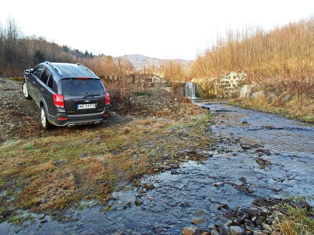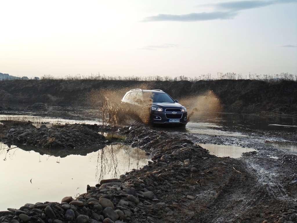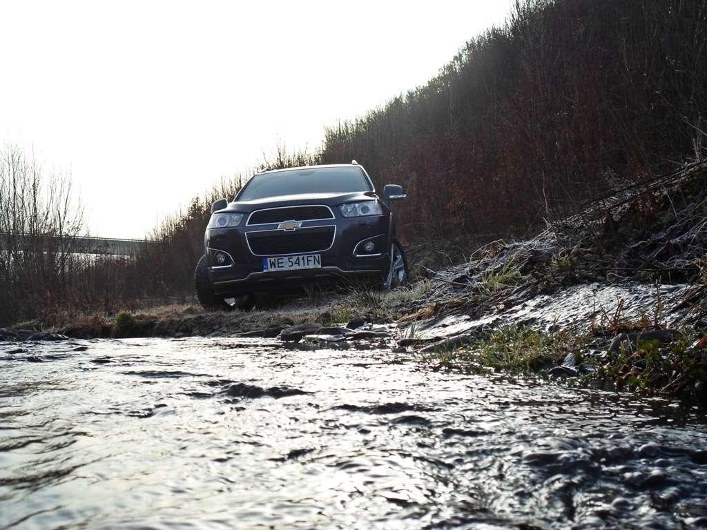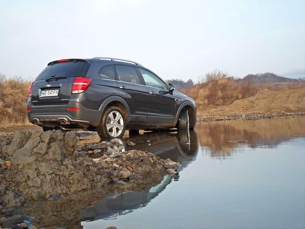 Trudno znaleźć wiarygodne informacje na temat głębokości brodzenia tego samochodu. Czyżby Captiva niczym kot bała się wody? Wątpię. To raczej mi zabrakło odwagi, by dokładnie sprawdzić jej możliwości w tej dziedzinie. Zanurzyłem Captivę do wody sięgającej zderzaka. Wiadomo, nic się nie stało. Próbę przejechania przez głęboką kałużę z dużą prędkością też pokonała z dziecinną łatwością. Trudno, żeby było inaczej. Nie znając dokładnych danych postanowiłem nie ryzykować spontanicznej kąpieli w głębszej i zimnej wodzie.